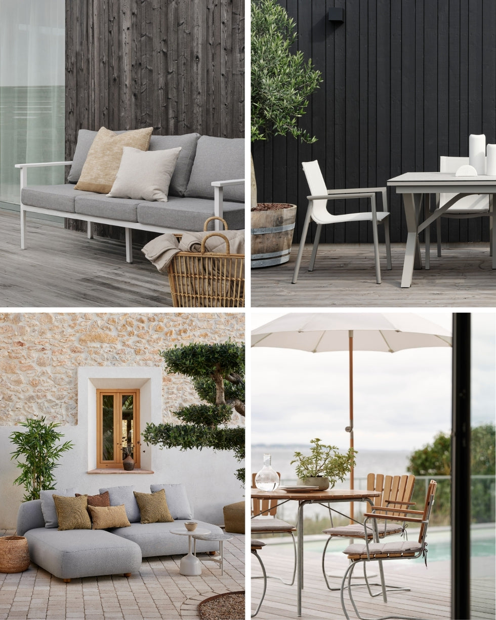 - Välj ljusa utemöbler i trä eller vit aluminium.