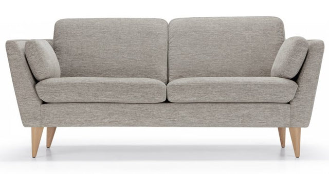 Denna retro inspirerade soffa är en stilren pjäs med plymåer i kallskum som kommer att hålla både formen och spänsten i många år framöver. De höga benen ger en luftig känsla som sprider sig över hela rummet och gör samtidigt soffan mycket bekväm att resa sig upp ur efter en fikastund som dragit ut på tiden. Designen av Mynta soffan är skapad för harmoni mellan ryggstöd, sittdjup och sitthöjd.