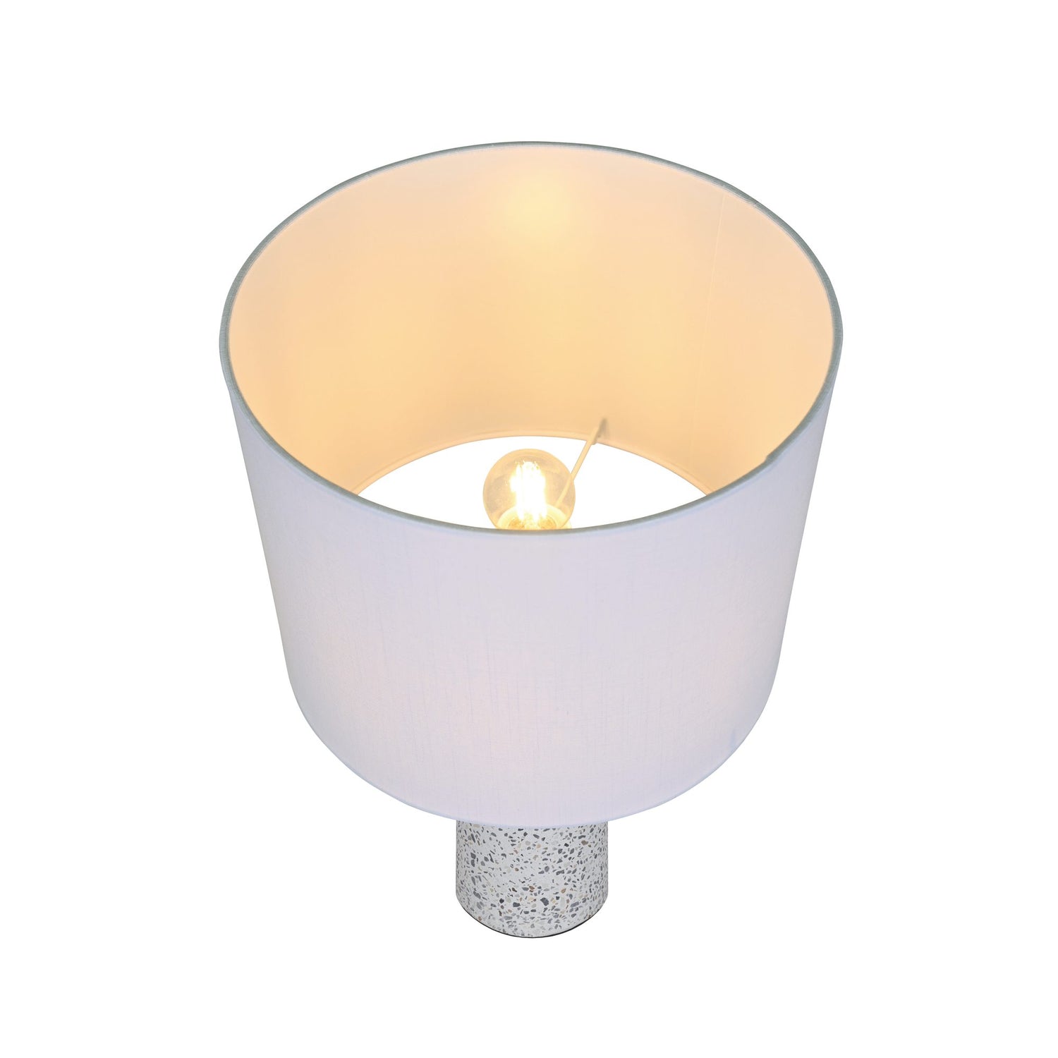 Antiga har en klassisk design med en modern twist. Lampan har en vacker terrazzofot och en klassisk tygskärm som ger ett mjukt och diffust ljus.