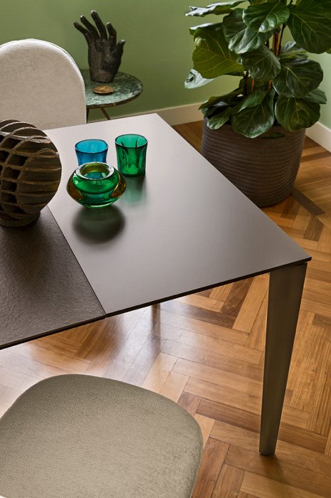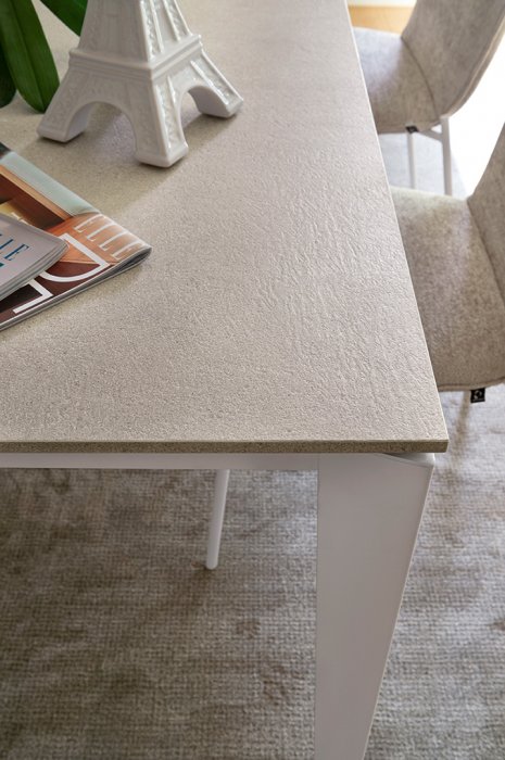 Den eleganta toppskivan går att få i melamin som finns i många olika finishar eller slitstark och vacker keramik. Se bilder för färgval. Melamin är ett praktiskt material som inte kräver något underhåll. Benen finns i fem olika färger.