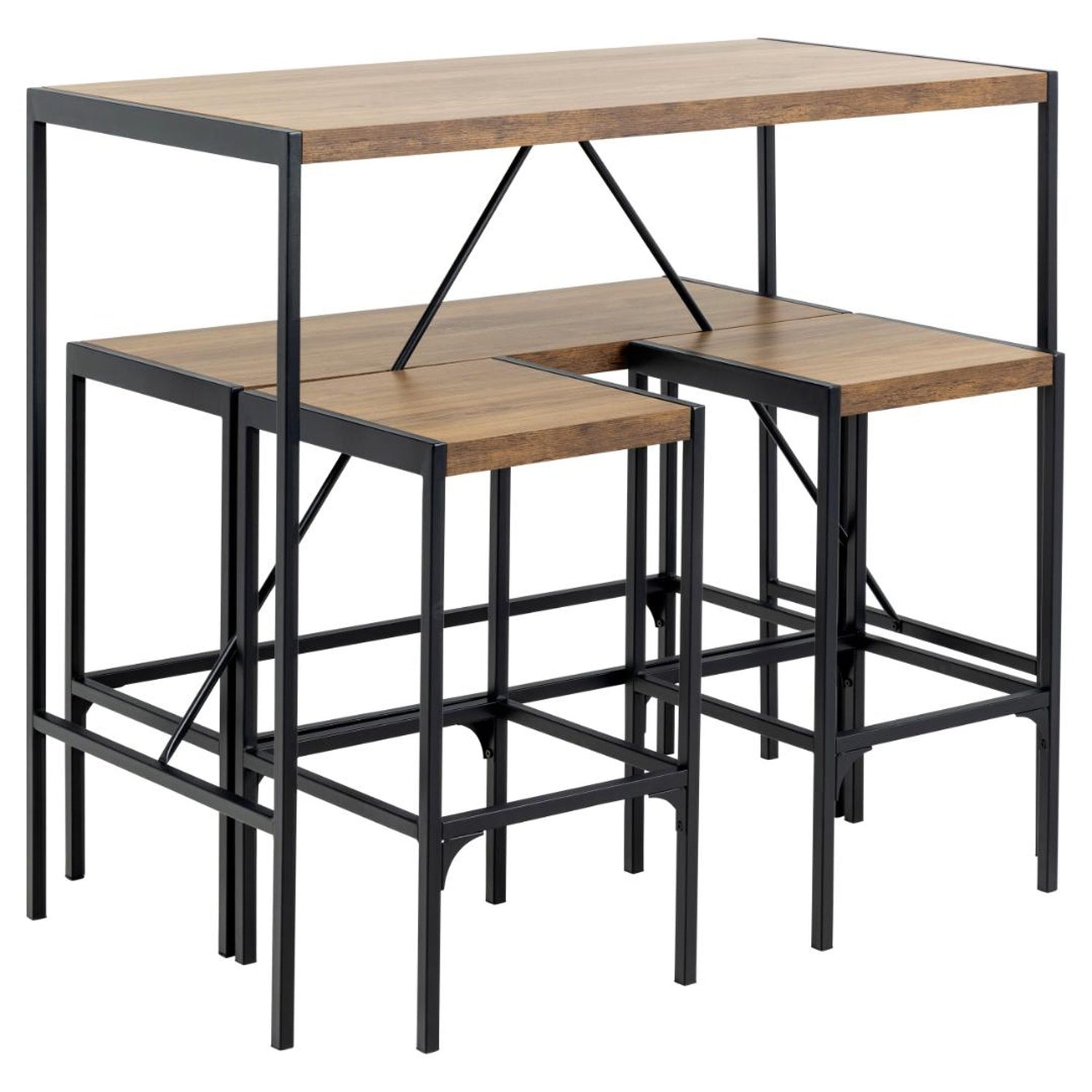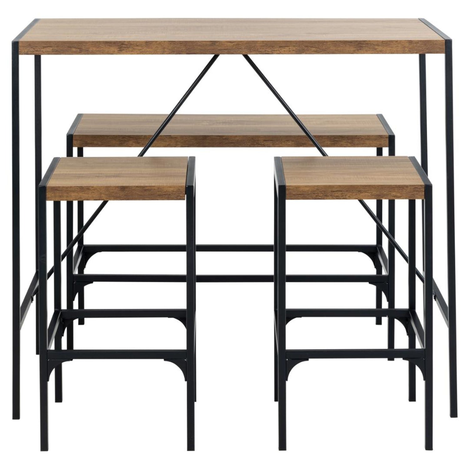 Skapa en inbjudande matsal med denna barstol set, inspirerad av urbant loftliv och industriella miljöer. Setet kombinerar svart pulverlackerat stål med rustik eklook för en avslappnad och stilren atmosfär.