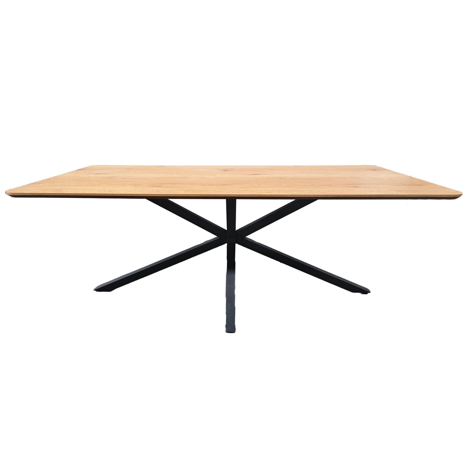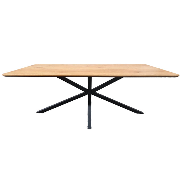 Classico är ett generöst matbord med ren, modern form. Den tåliga bordsskivan i ekmelamin ger varm träkänsla och är lätt att hålla ren, medan det svarta kryssunderredet i pulverlackerat stål ger stabilitet och gott benutrymme runt hela bordet. Med sitt rejäla format 100×200 cm rymmer bordet utan problem familj och vänner för både vardag och fest, en stilren mittpunkt som är enkel att matcha i de flesta hem.