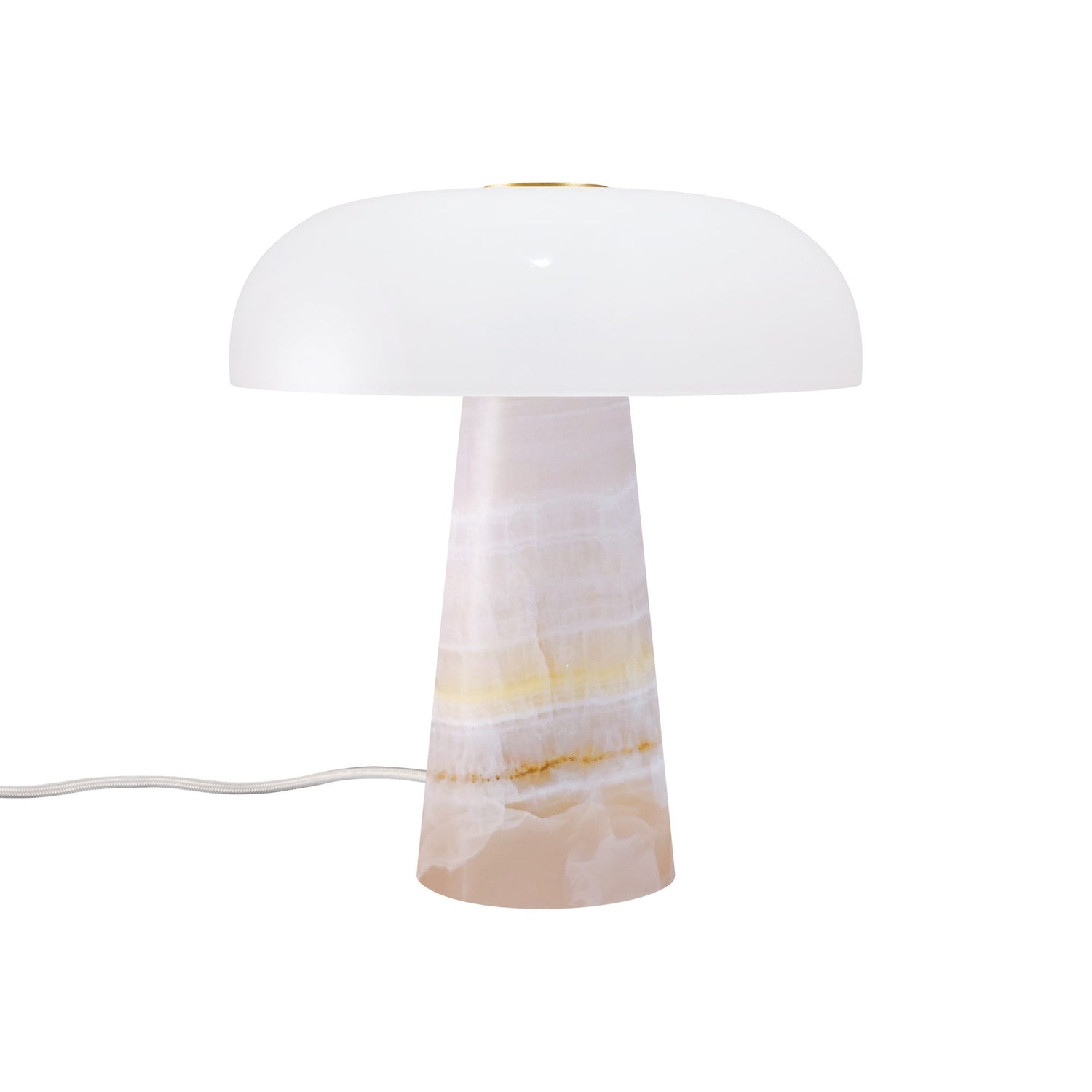 Glossy är sinnebilden av smakfull och sofistikerad design. Designern Maria Berntsen har här skapat en ”miniversion” av den klassiska bordslampan, som utstrålar nordisk minimalism och där kombinationen av de exklusiva materialen jadesten, mässing och opalvitt glas gör lampan otroligt elegant. Glossy är uppkallad efter skärmens blanka yta i opalvitt glas som låter ett mjukt och behagligt ljus lysa igenom.Den rosa jadestenen är en sällsynt och unik variant av jade och därför kan linjer, färger och mönster variera från lampa till lampa. Detta är en del av charmen med att arbeta med naturmaterial.