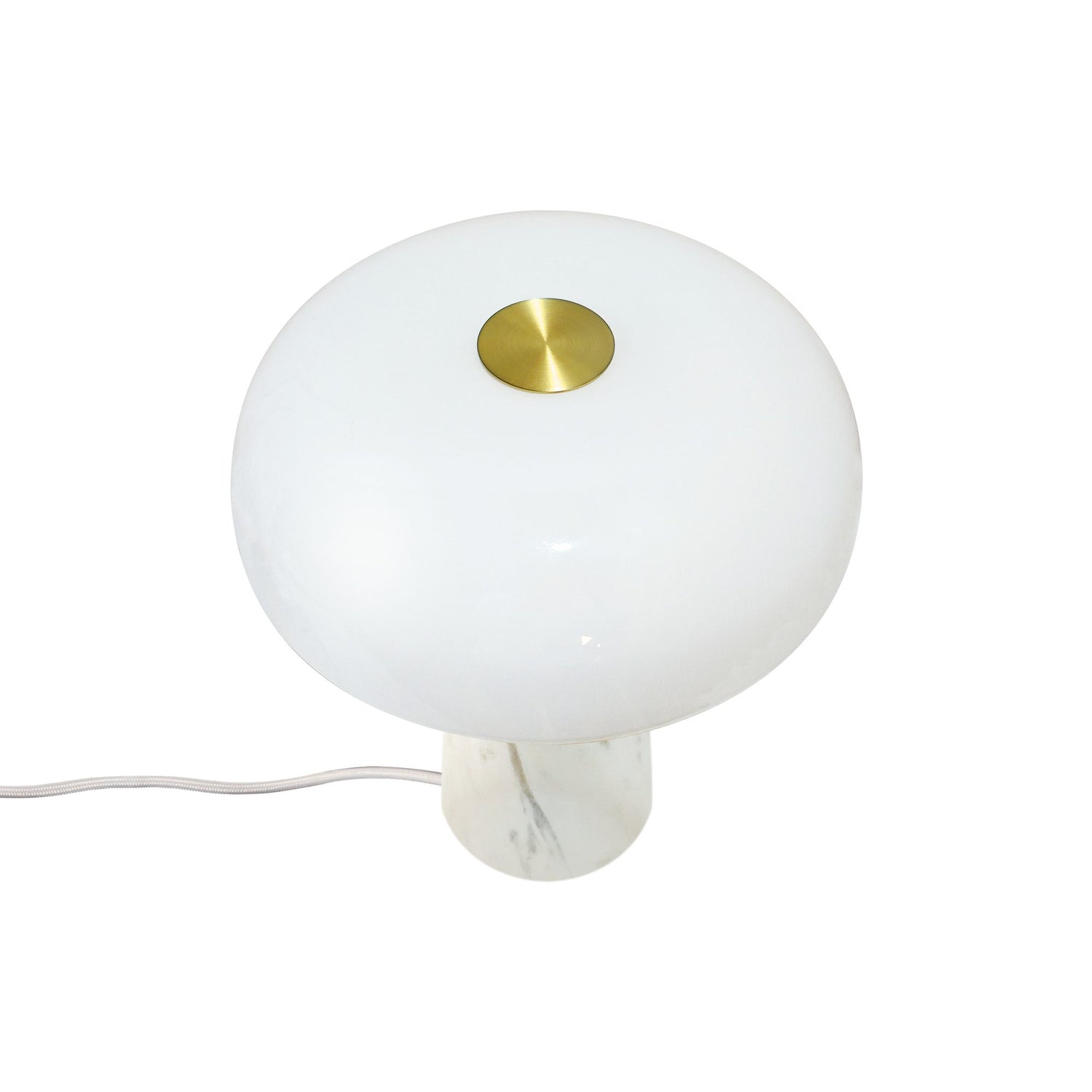 Glossy är sinnebilden av smakfull och sofistikerad design. Designern Maria Berntsen har här skapat en ”miniversion” av den klassiska bordslampan, som utstrålar nordisk minimalism och där kombinationen av de exklusiva materialen marmor, mässing och opalvitt glas gör lampan otroligt elegant. Glossy är uppkallad efter skärmens blanka yta i opalvitt glas som låter ett mjukt och behagligt ljus lysa igenom.Marmor är ett unikt naturmaterial och därför kan linjer, färger och mönster variera från lampa till lampa. Detta är en del av charmen med att arbeta med naturmaterial.