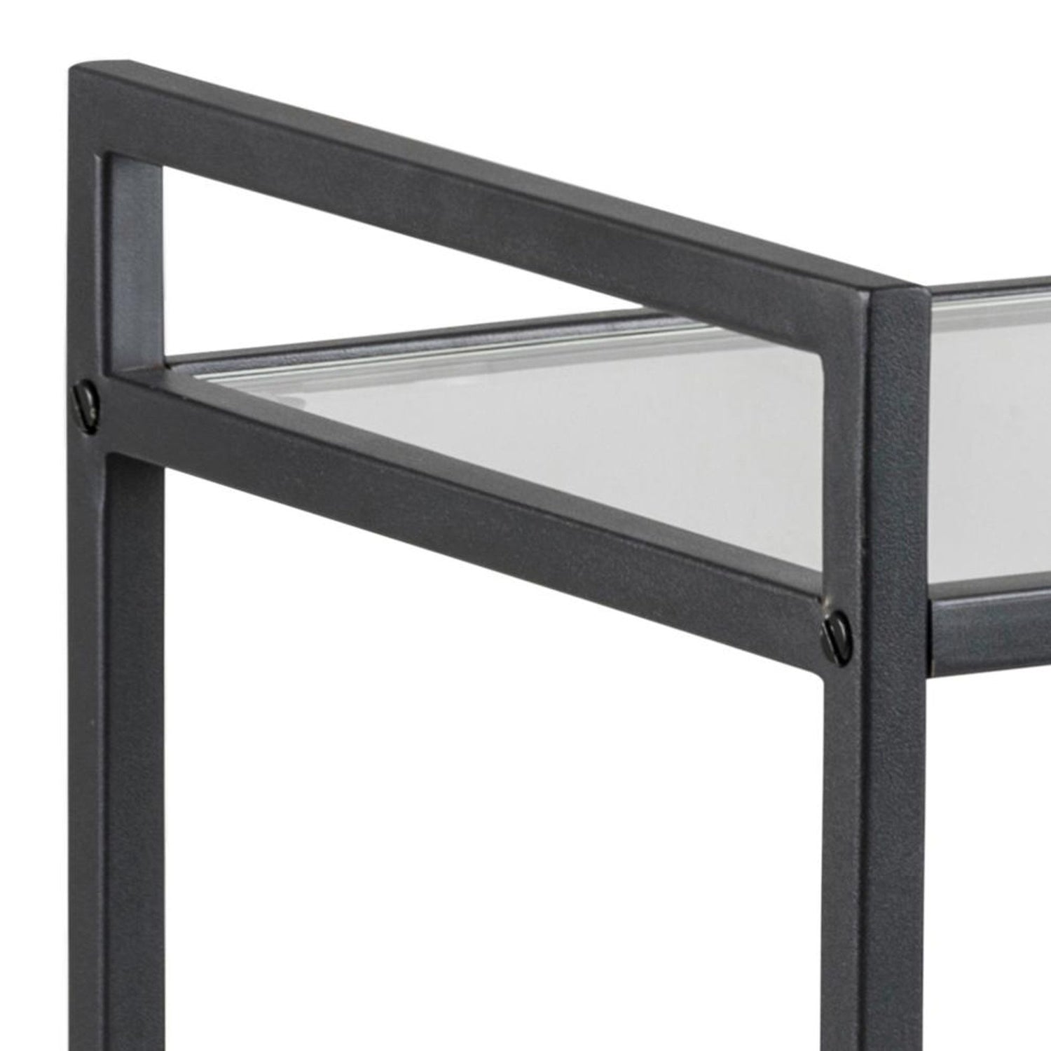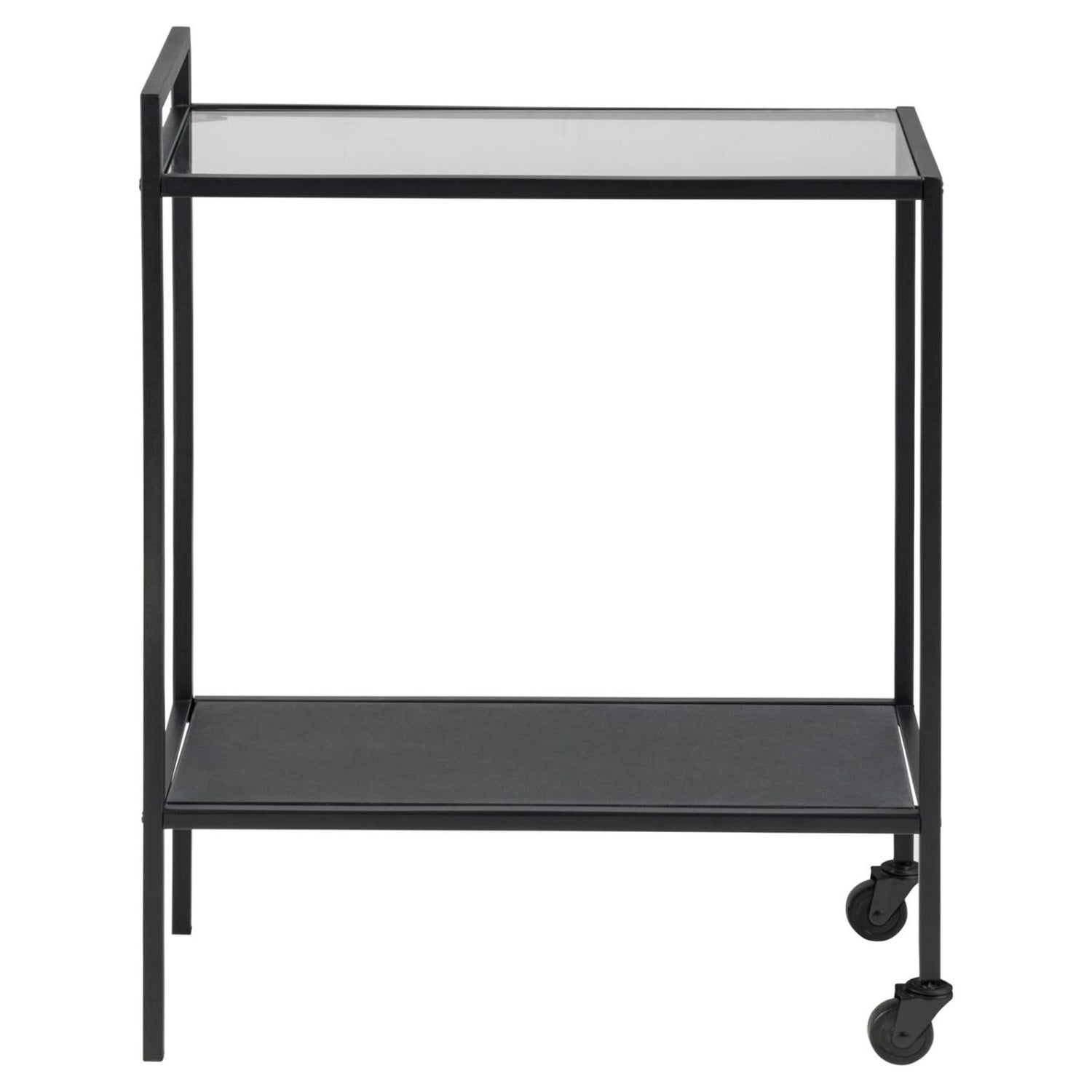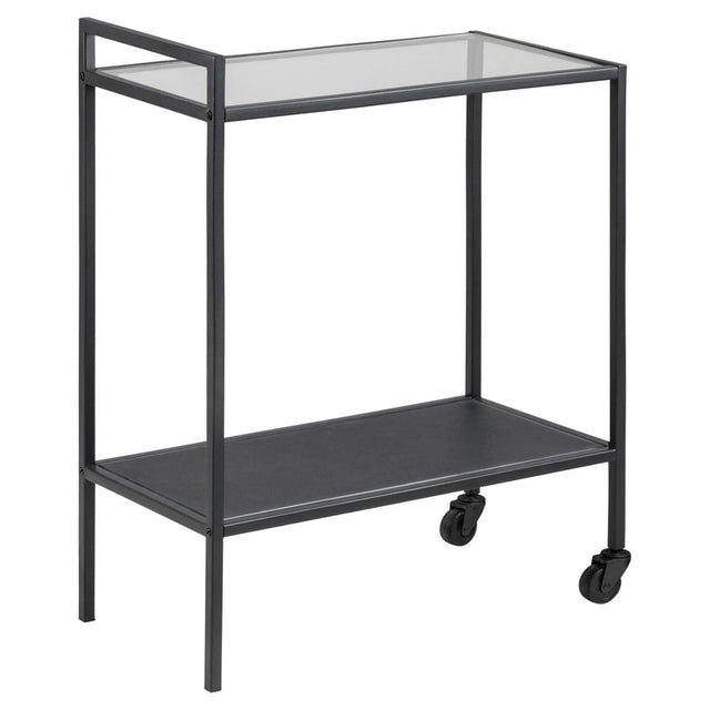 Tillför en extra touch av klass till ditt hem med denna mångsidiga serveringsvagn. Perfekt för köket, vardagsrummet eller badrummet, tillverkat av transparent glas och svart metall för en stilfull känsla.