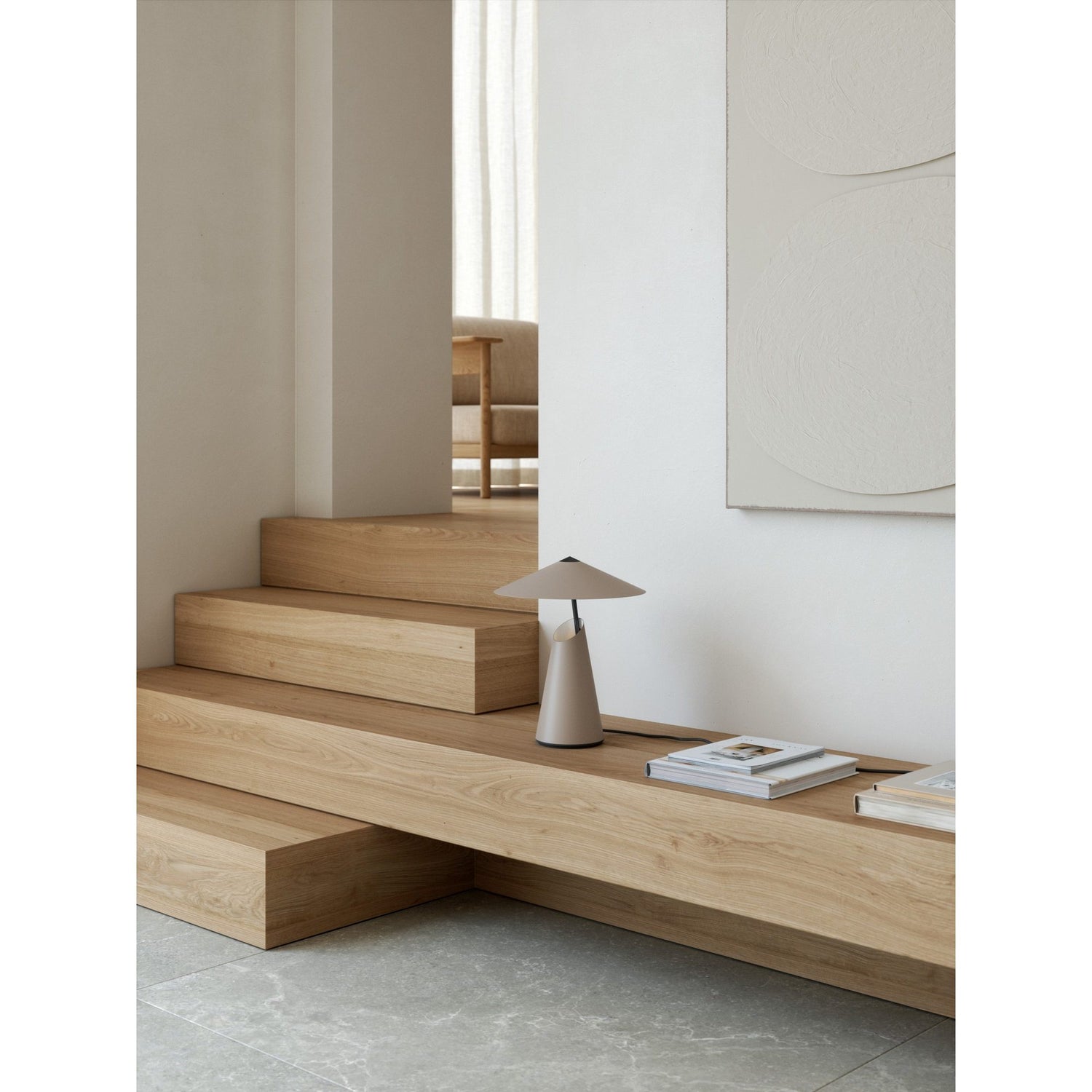 Bordslampan Taido från Anker Studio består av två geometriska former som tillsammans skapar en elegant siluett. Den vinklade, runda skärmen är elegant fäst på den koniska basen. Ljuset reflekteras upp i skärmen och skapar ett mjukt och diffust ljus. Lampan kan justeras i många riktningar, vilket gör att du kan ändra stämningen.