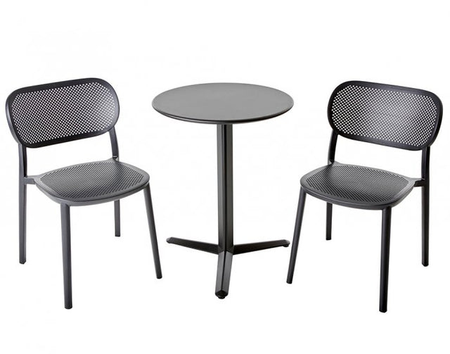 Bordet finns tillgängligt i två stilrena färger och flera olika storlekar för att passa olika utrymmen och behov. Den robusta basen är tillverkad av lackad aluminium, vilket ger stabilitet och långvarig hållbarhet, även under krävande förhållanden. Bordsskivan är tillverkad av lackat stål, vilket ger en elegant och tålig yta som är enkel att rengöra och underhålla.