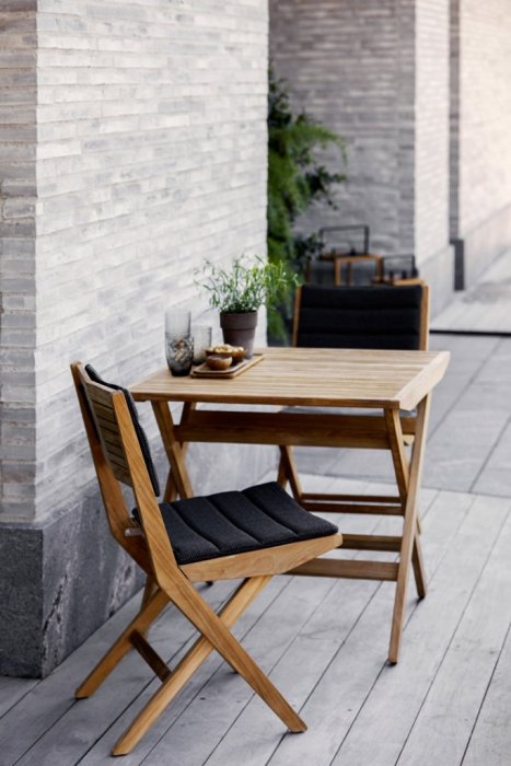 Flip Fällbord är ett vikbart bord i teak. Flip är en nytolkning av de klassiska fällborden där man inte har kompromissat med varken design eller kvalitet. Den danska duon Strand+Hvass är designerna bakom den inbjudande designen. Den varma teaken ger de enkla och eleganta fällborden en inbjudande glöd. Flip fällbord passar bra i mindre uterum där förvaring är en bristvara.