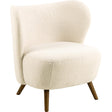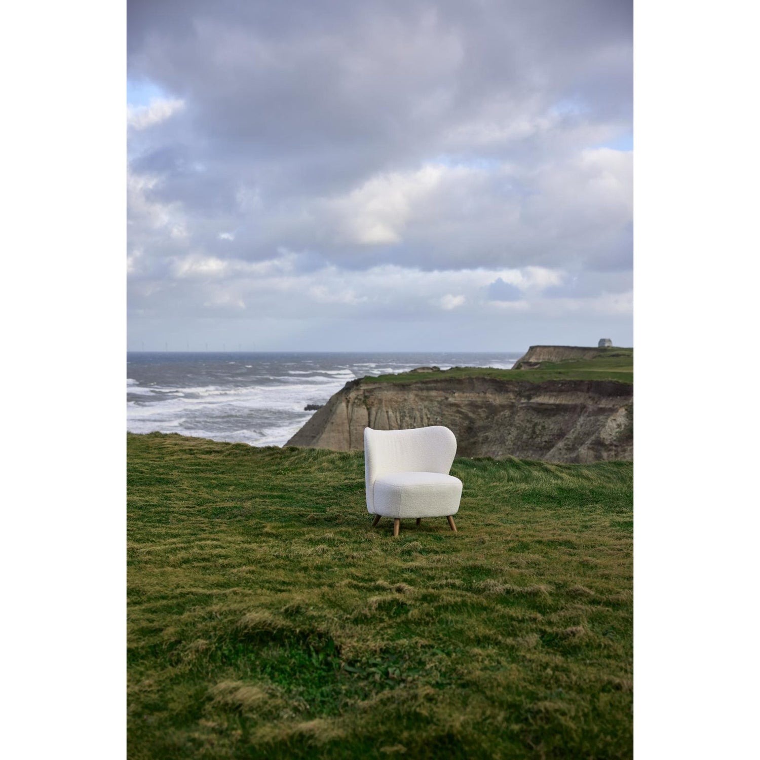 Upptäck komforten med en stilfull design i denna loungefåtölj klädd i ett krämfärgat teddyliknande tyg som ger en mysig och inbjudande känsla. Perfekt för varje läshörna eller vardagsrum!