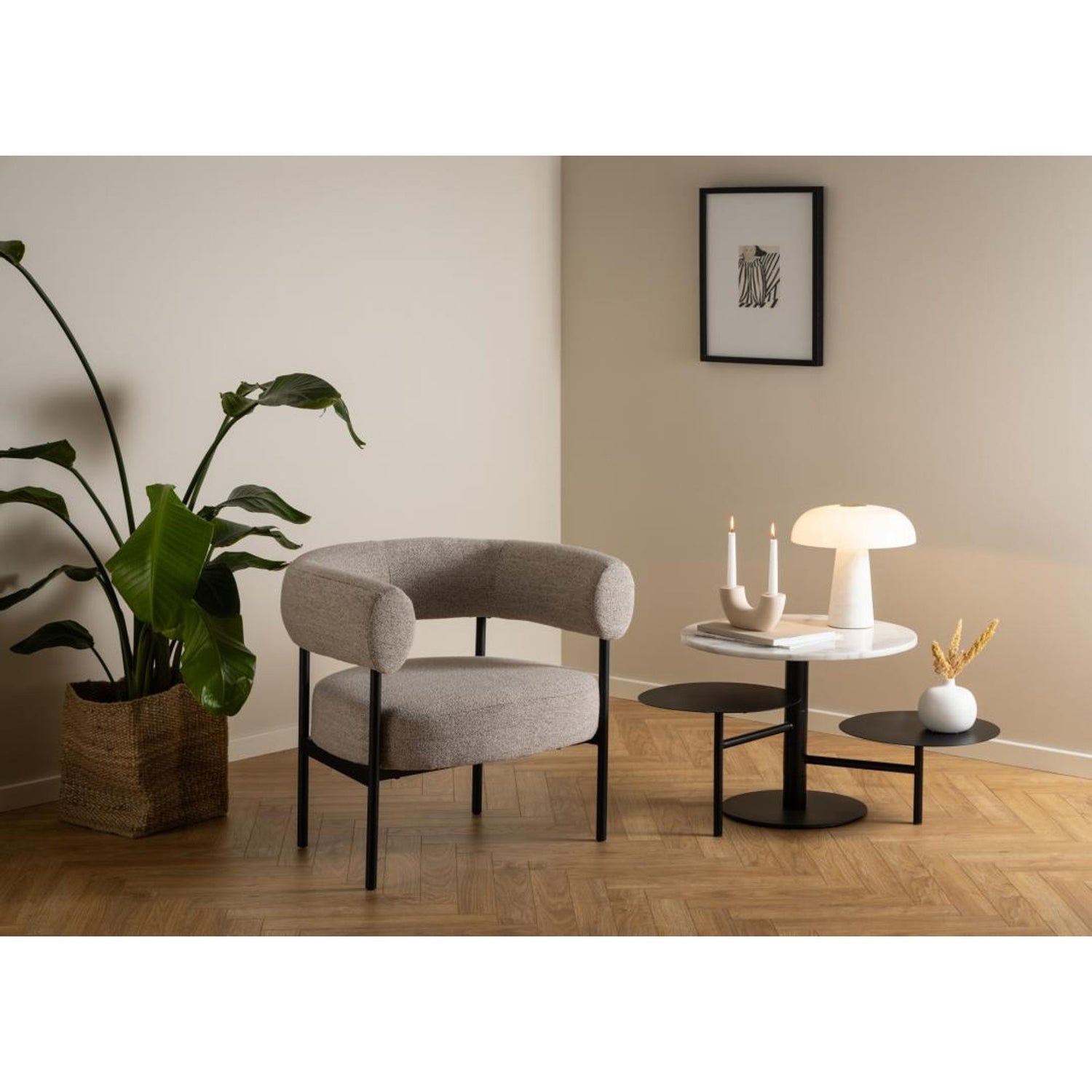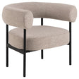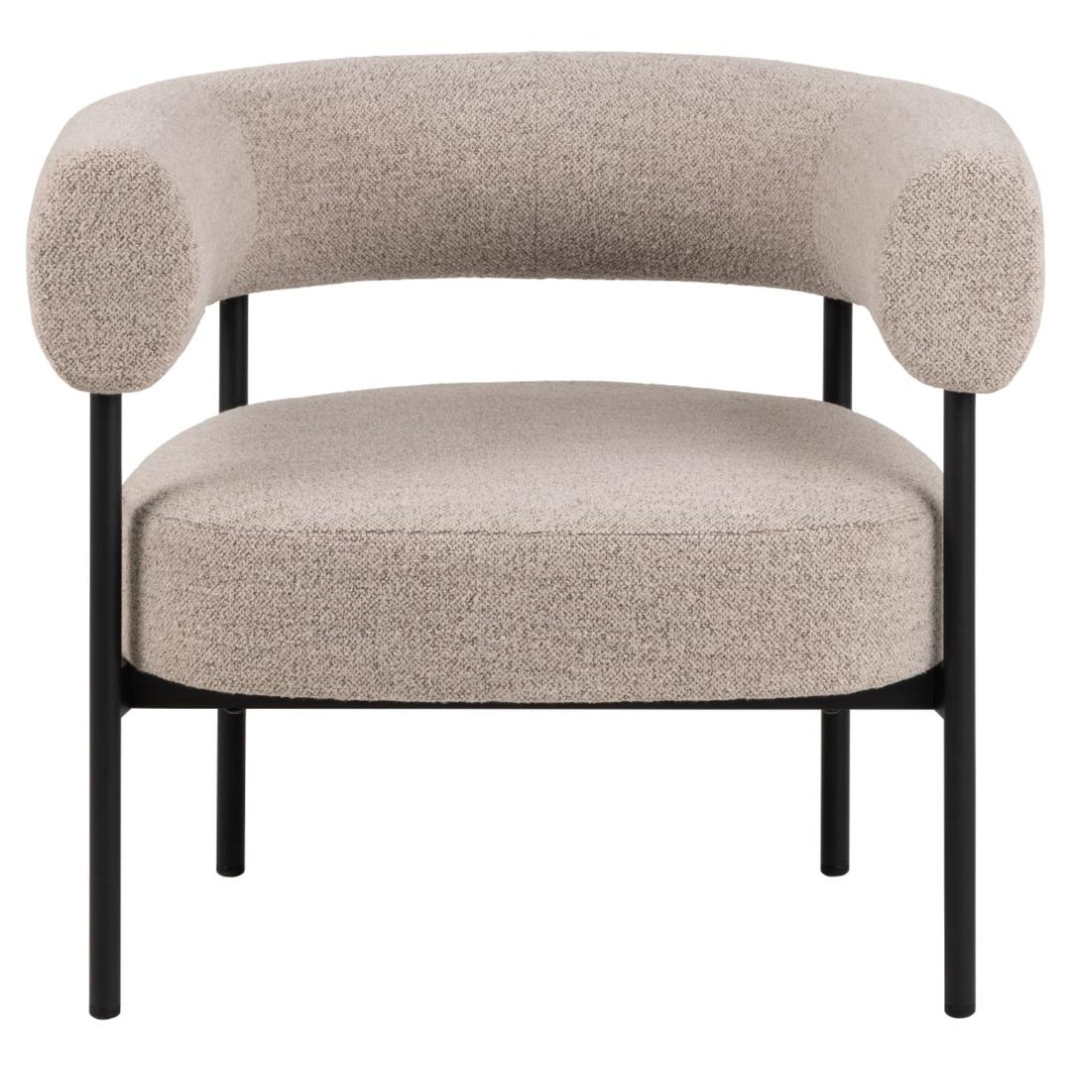Loungefåtöljen Wigginsär designad för både komfort och stil. Med en rundad rygg och sittdyna i beige strukturerat tyg, erbjuder fåtöljen en mysig känsla och fantastisk sittupplevelse tack vare pocketfjädrarna.