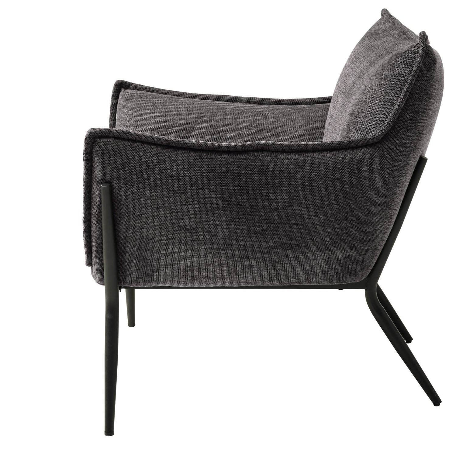 Sicilia är en modern loungefåtölj med mjukt, slitstarkt tyg i mörkgrå ton och en slank bas i svart metall som ger ett lätt och elegant uttryck. Den generösa sitsen, det omslutande ryggstödet och de bekväma armstöden bjuder in till långvarigt sittande, perfekt för läshörnan, vardagsrummet eller hemmakontoret. Stilren design som är enkel att kombinera och tillräckligt robust för vardagsbruk.