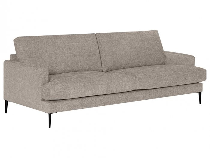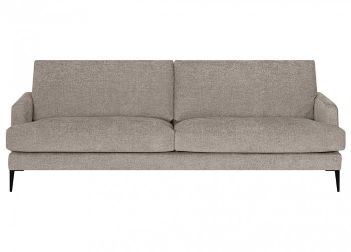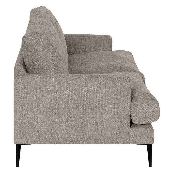 De smala armstöden ger ett luftigt och sofistikerat uttryck, medan de svarta metallbenen bidrar med en modern kontrast och stabilitet. Dis är perfekt för dig som vill ha en soffa som både är praktisk och vacker.