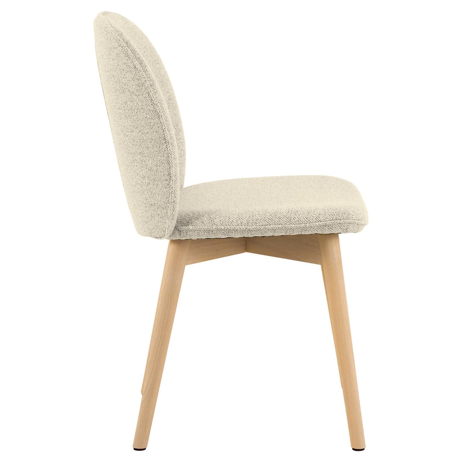 Förhöj din matplats med denna eleganta krämfärgade matstol. Det runda ryggstödet och det mjuka bouclé-liknande tyget ger en modern och lyxig känsla, perfekt för både middag och frukost.