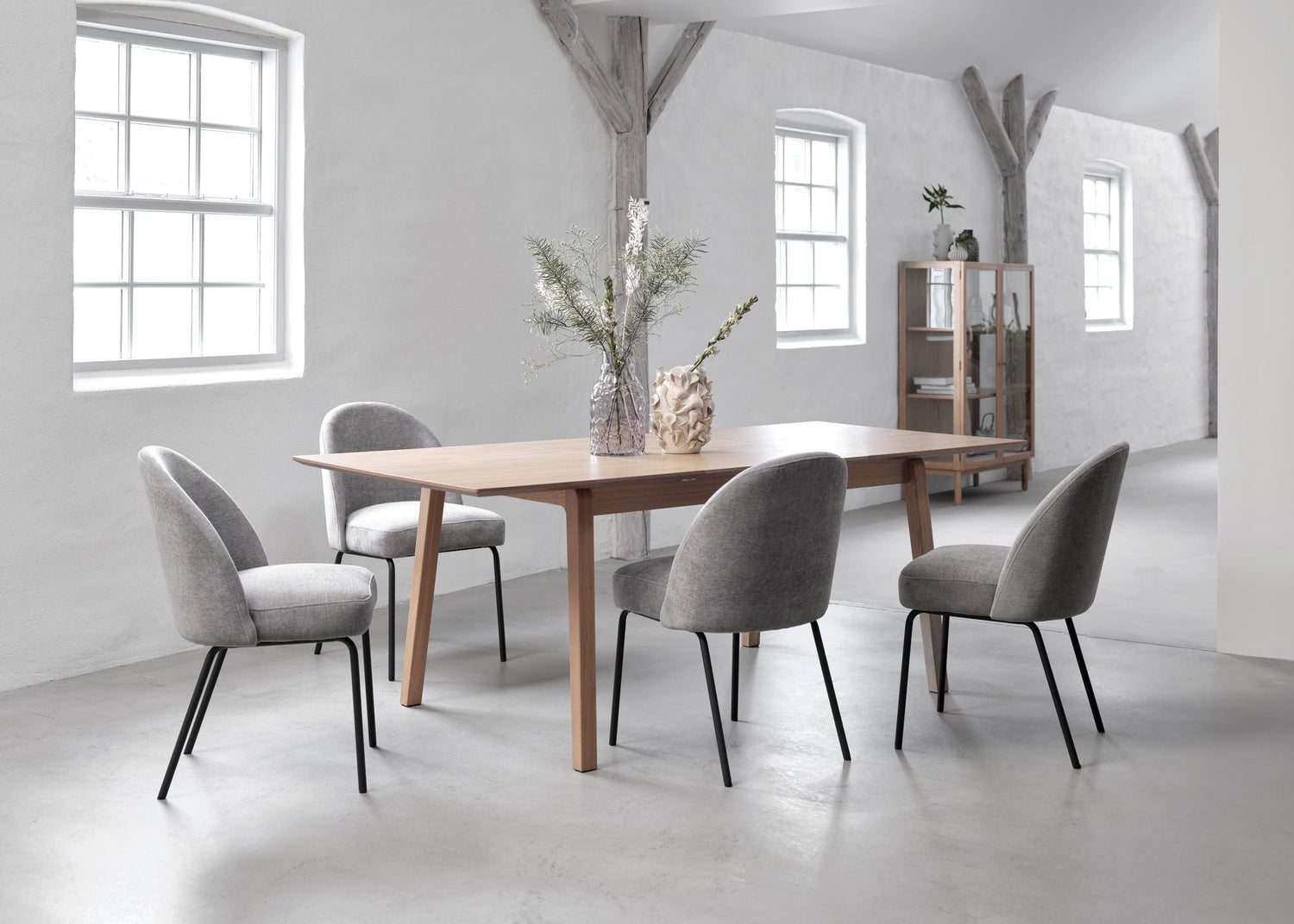 Contorno är en mjuk och inbjudande matstol med skandinavisk känsla. Den generöst stoppade sitsen och det böjda, omslutande ryggstödet ger skön komfort vid både vardagsmiddag och långhelg. De slanka benen i svart, pulverlackerad metall ger ett modernt, luftigt uttryck och gör stolen lätt att kombinera med olika bord och inredningsstilar. Välj grå för ett sobert intryck eller någon av färgerna rosa, sand eller svart för att sätta din egen prägel.