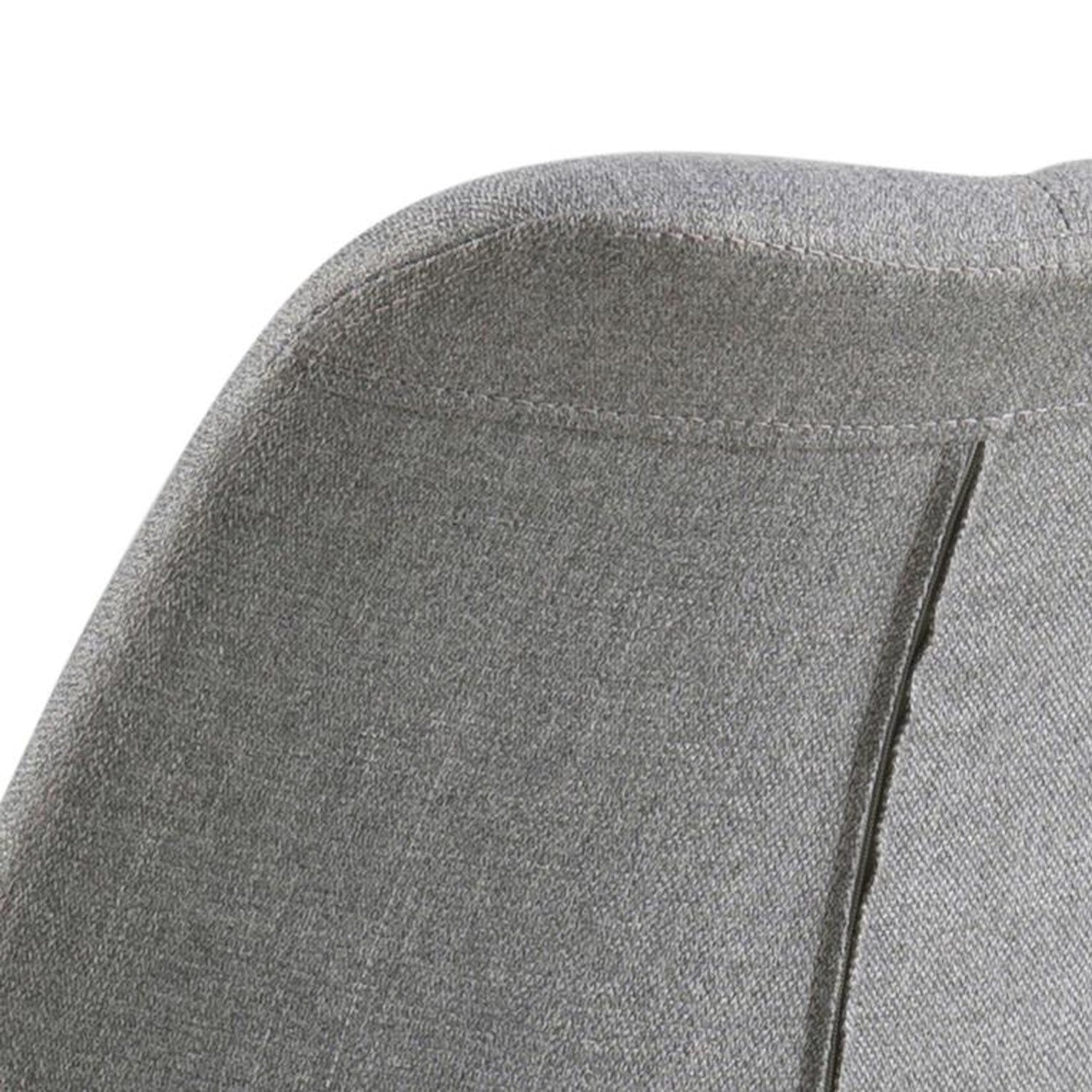 - Klädd i ljusgrått flatvävt tyg