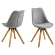 Denna matstol i skandinavisk stil kombinerar stil och funktion. Med sin ljusgrå, vävda klädsel och robusta träben ger den både komfort och en elegant estetik i ditt hem. Perfekt för både vardagliga middagar och speciella tillfällen.