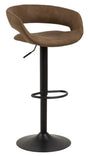 Denna höjdjusterbara barstol kombinerar modern design och bekvämlighet. Klädd i ljusbrunt mikrofibertyg med en speciell beläggning för ett råare utseende, erbjuder den ett bekvämt sittande. Ett subtilt snitt i ryggen ger stolen ett unikt utseende, medan den svarta, pulverlackerade basen med svängfunktion ger stabilitet och rörelsefrihet.