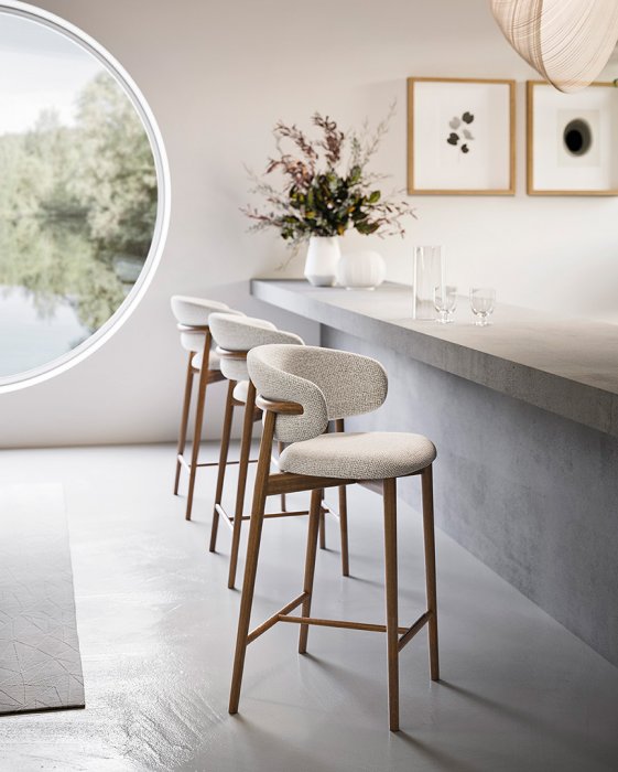 Oleandro är en exklusiv barstol från italienska Calligaris med vadderad träbotten och en sits som ger en ren komfort. Stolsitsen och ryggstödet har en generös mjuk stoppning som finns i olika sorters klädsel. En snygg touch på denna modell är att hitta på änden av träryggstödsramen som mästerligt har visats till en tillplattad spets