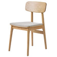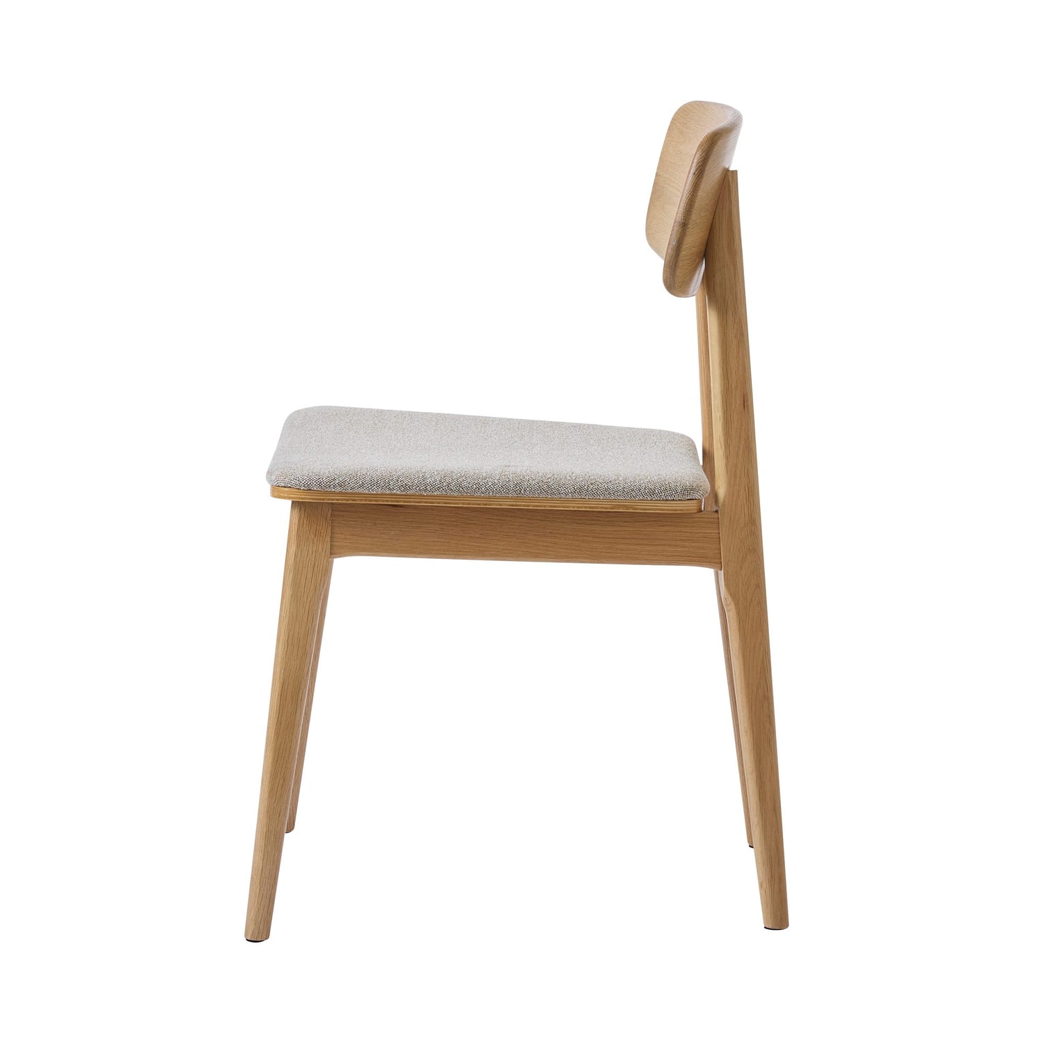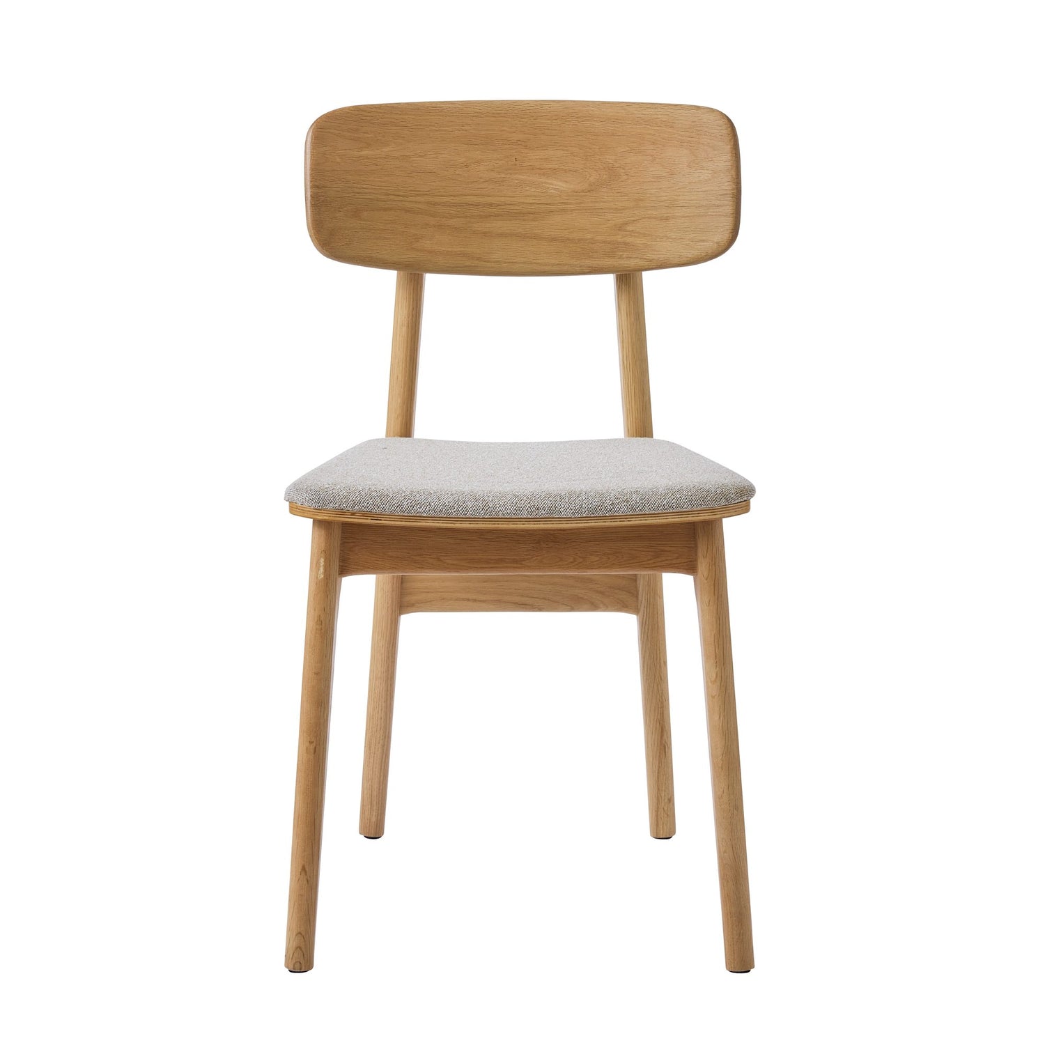 En elegant matstol i klassisk skandinavisk design med ram i naturlig ek och sits i mjukt grått tyg. Det rundade ryggstödet i trä ger bekvämt stöd och en harmonisk balans mellan form och funktion. Den ljusa färgkombinationen gör stolen enkel att matcha med både moderna och traditionella matbord.