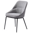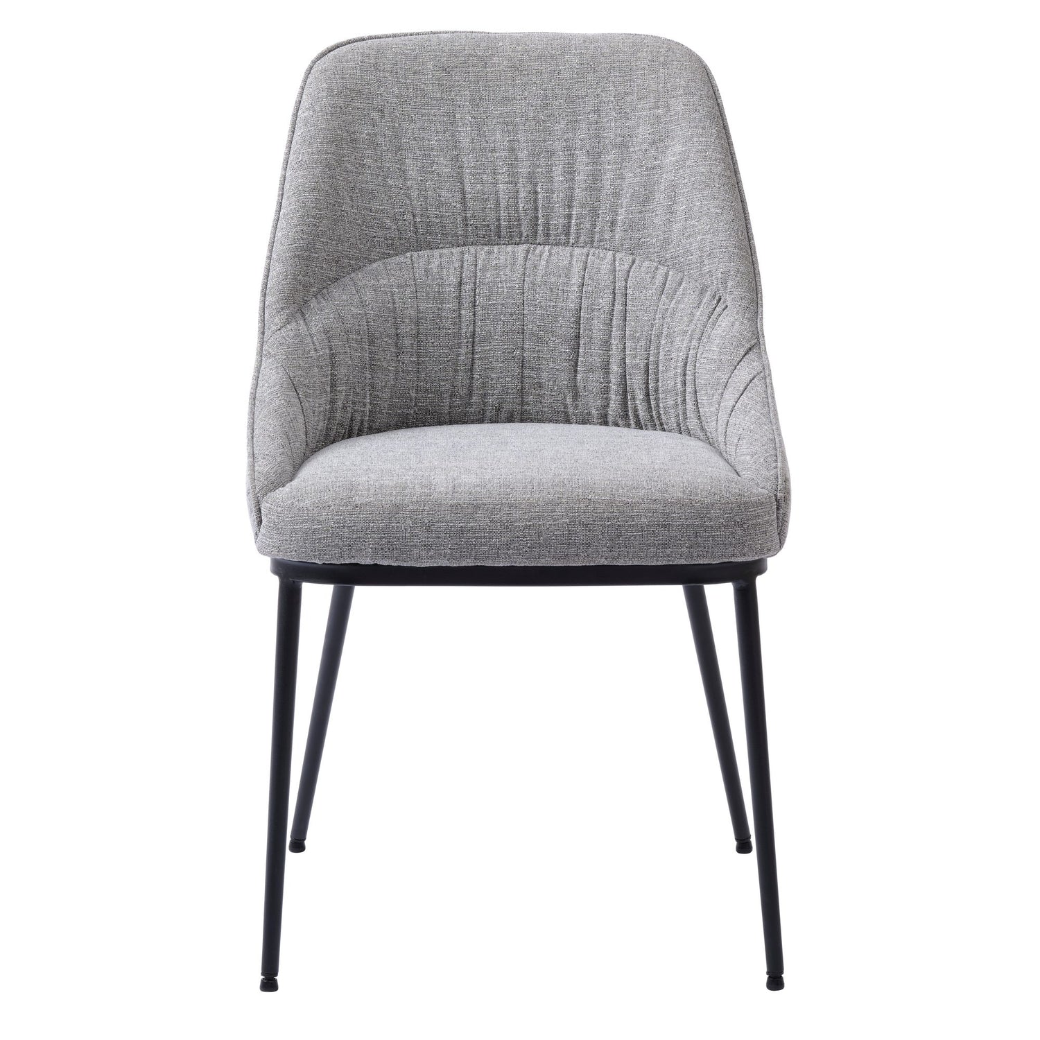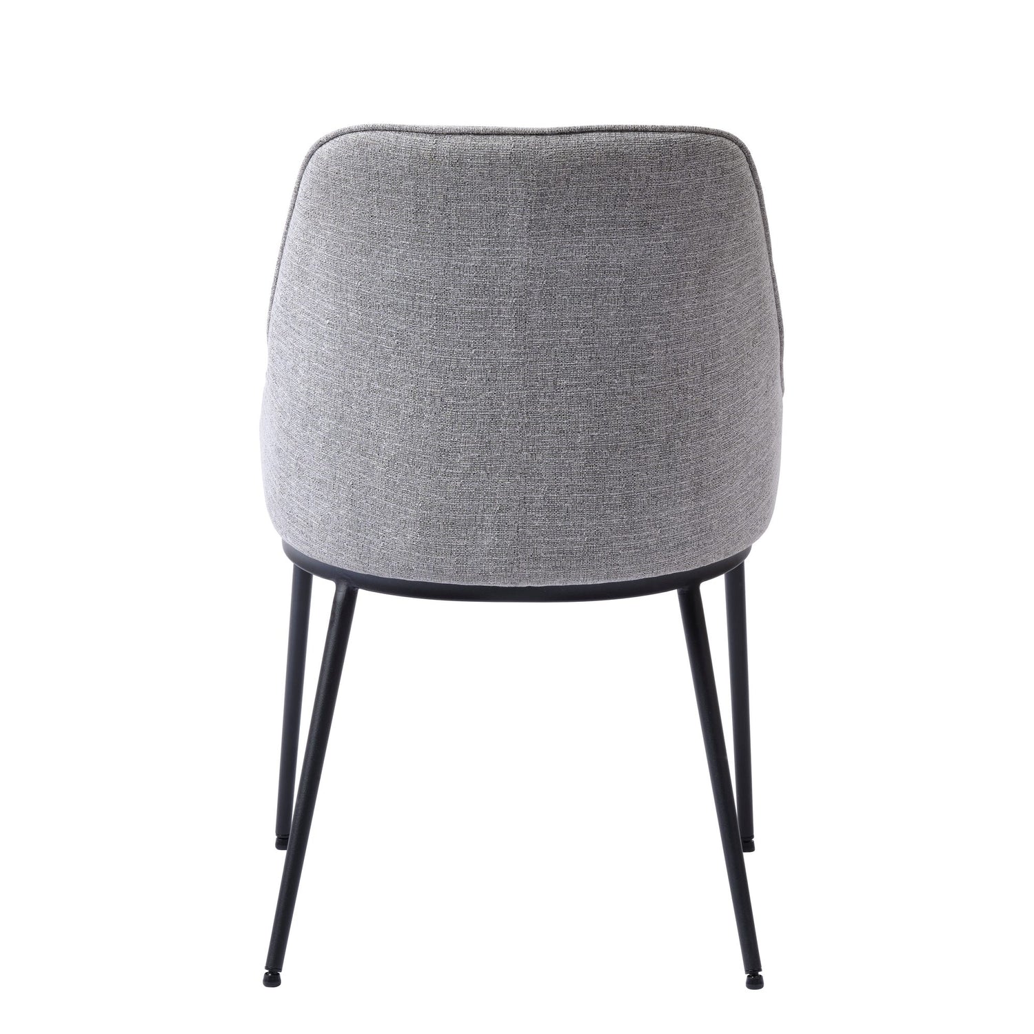 Vetro är stolen som lyckas vara både elegant och lätt att leva med. Den mjukt formade ryggen med dekorativa sömmar omsluter skönt, medan den generösa sitsen i mellangrå tweed ger långvarig komfort vid middagar och möten. De slanka, svarta metallbenen lättar uttrycket och gör stolen enkel att matcha i både kök och vardagsrum.