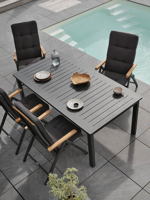 Möt Andy Positionsstol – en av våra mest omtyckta stolar som inte bara håller ställningen utan också definierar komfort och elegans. Med en stomme i antracitgrå aluminium ger Andy en modern och sofistikerad touch till din utomhusmiljö.