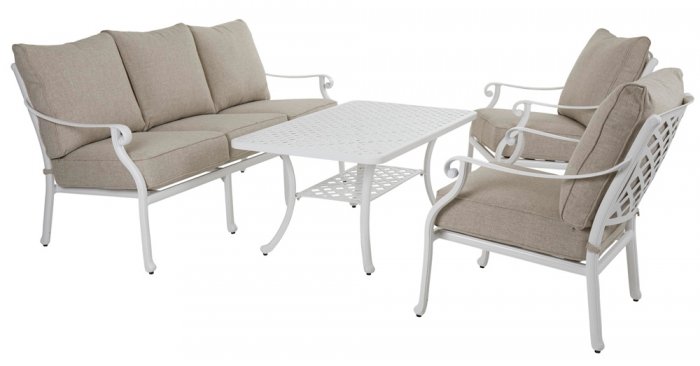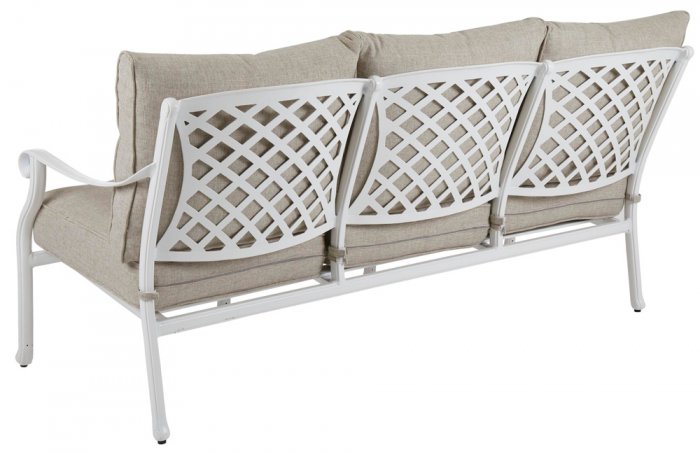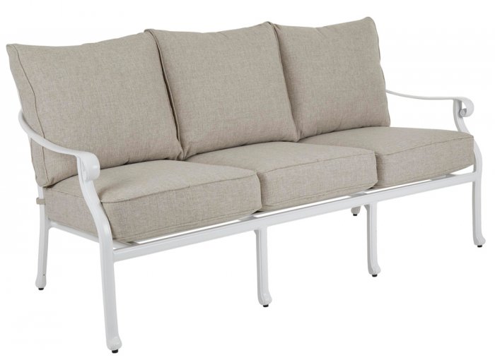Arras är en stilren 3-sits soffa från Brafab som är inspirerad av den klassiska gjutjärnssoffan. Fördelen med den är att den är tillverkad i aluminium vilket gör att den är mycket mer tålig mot vatten och fukt samt är lättare och smidigare. Arras har rejäla och tjocka dynor klätt i ett starkt olefintyg som ger soffan en myket bra sittkomfort.
