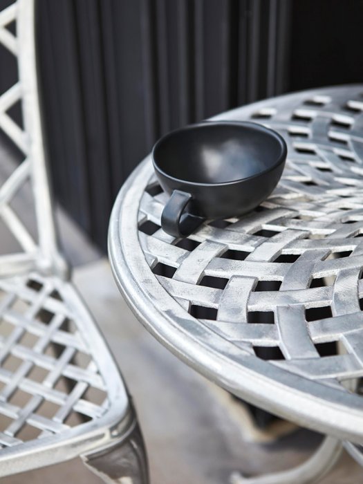 Välj mellan den klassiska mörkgrå finishen för en tidlös elegans eller den ljusare och härligare vita färgen för att ge Arras en helt annan karaktär. Arras-cafébordet är ett perfekt komplement till din utomhusinredning och är utformat för att ge en stilfull och bekväm upplevelse utomhus. Skapa en harmonisk och inbjudande atmosfär med Arras-serien från Brafab.