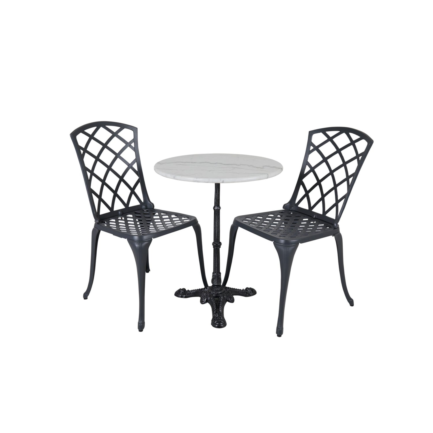En matstol med klassisk estetik i moderna material med mönster inspirerat av historiska förlagor och stiligt böjda ben. Arras är en serie i gjuten aluminium där klassisk estetik i kombination med moderna material skapar en stil som du kan njuta av i många år. Robusta och rejäla möbler som inte kan rosta.