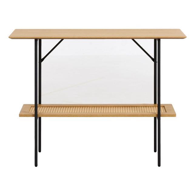 Tillgänglig i svart och natur, kombinerar detta bord moderna linjer med en subtil naturlig accent. Polyrottingdetaljen på den nedre hyllan tillför textur samtidigt som den förblir hållbar och lätt att underhålla.