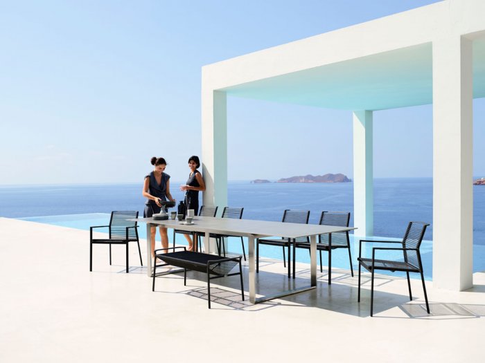 Edge är en bekväm och modern utomhusstol från Cane-Line. Stolen är tillverkad i antracitgrå pulverlackad aluminium. Väven i rygg och sits är tillverkad i deras egna Cane-Line Rope" som består av 100% polypropylene som torkar väldigt snabbt och är helt UV-beständig. Edge har en fantastisk komfort som blir än bättre med en sittdyna och nackkudde som finns som tillval. Edge är stapelbar.
