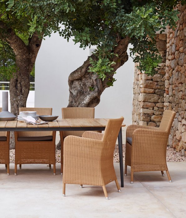 Hampsted är en klassisk korgstol från Cane-Line. Hampsted har en underbar sittkomfort framför allt med dynan som finns som tillval. Dynan är tillverkad i Sunbrella tyg som helt vattentät. Stommen är tillverkad i vävd konstrotting av absolut högsta kvalitet vilket gör stolen helt underhållsfri samt att den är godkänd för offentlig miljö. Hampsted finns i flera olika färger.