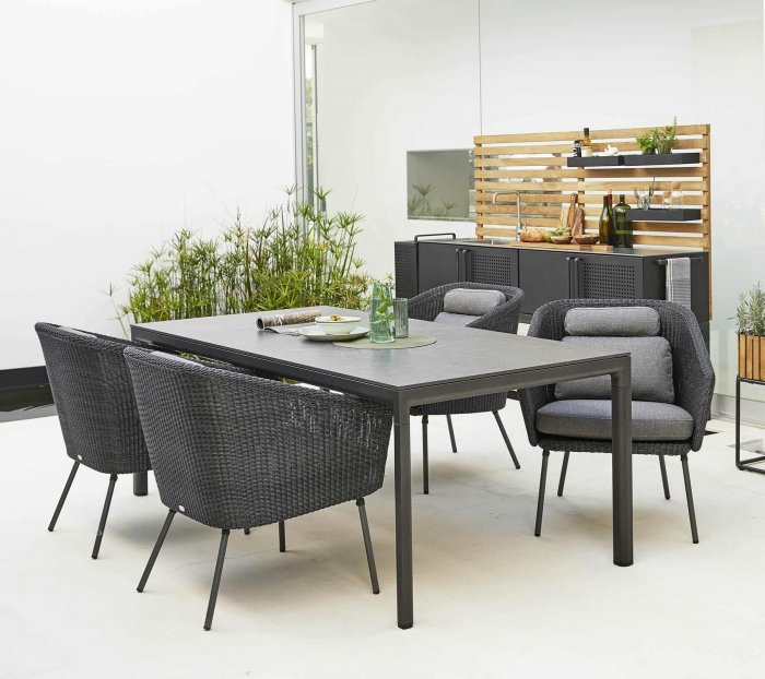 Mega är en modern stol till din matgrupp. Stolen har designats av ByKato och är en unik möbel. Den strama designen och de skandinaviska färgerna skapar ett mycket urbant utseende. Mega är tillverkad i Cane-line Weave®, vilket gör den perfekt för utomhusbruk i alla klimat eftersom materialet är temperatur- och UV-beständigt. Dynorna är gjorda i Cane-line SoftTouch® med QuickDry-system, vilket ger utmärkt komfort. Cane-line QuickDry-systemet är en speciell teknik – när det har slutat regna är dynorna torra på ungefär en timme.