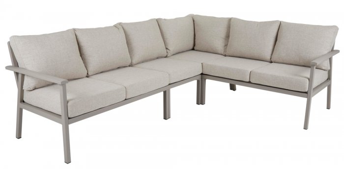 Samvaro är en modern och samtidigt klassisk serie i aluminium som bjuder på en rad kombinationsmöjligheter. De runda och mjuka formerna skapar en trivsam och inbjudande känsla i Samvaro där detaljerna står i fokus. Bekväma dynor i olefintyg med en vattenavvisande beläggning. Armstöden på Samvaro är lätt rundade och matstolen har en formad och extra bekväm ryggdyna. Samvaro blandar helt enkelt klassisk design med moderna och praktiska material. Samvaro har även fokuserat mycket på att få till en riktigt bra sittkomfort men bra ergonomi och känsla.