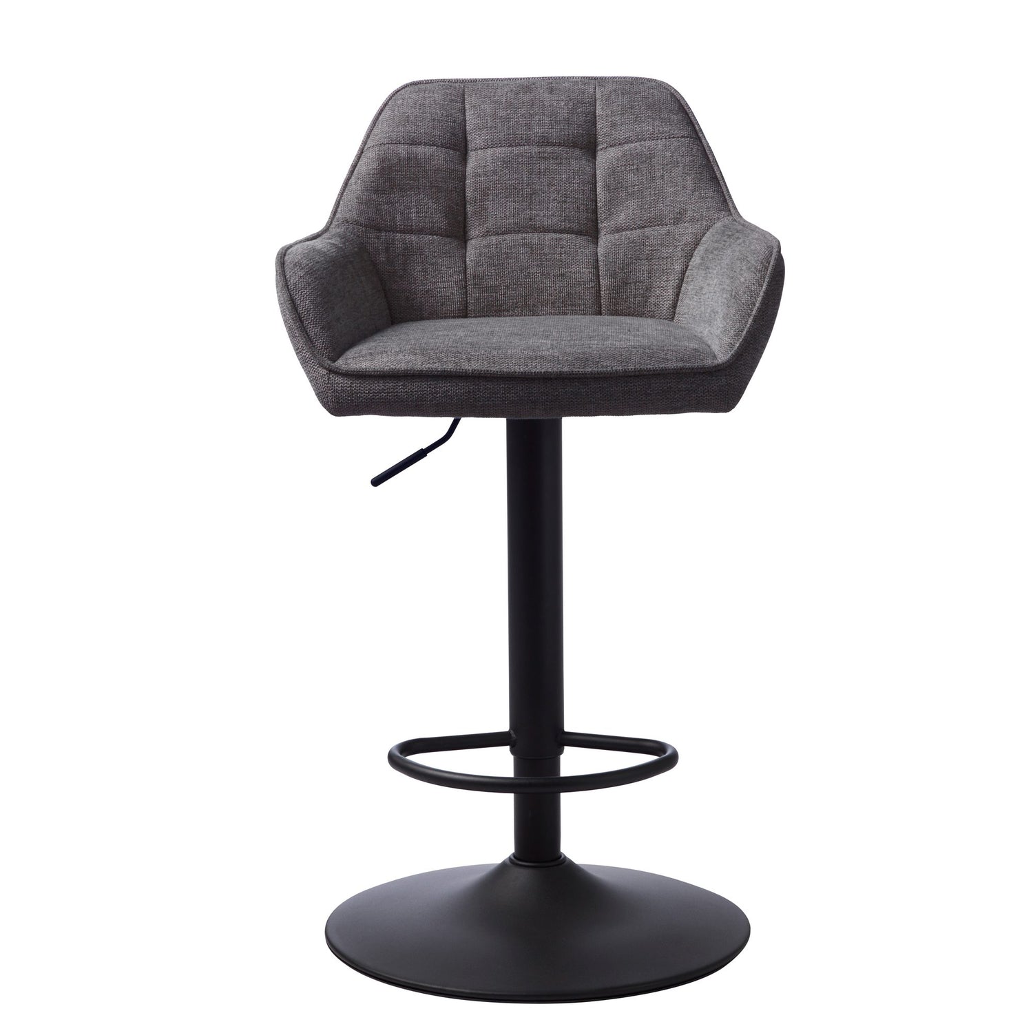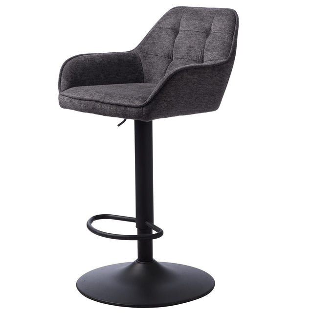 Cubo är en inbjudande barstol med modern, skandinavisk känsla. Den mjukt formade sitsen med låga armstöd är klädd i mörkgrått tyg med diskret rutsömnad i ryggen. Den svarta trumpetfoten i pulverlackerad metall ger stabilitet och ett rent uttryck, medan den integrerade fotstödsringen avlastar benen. Finns även i sand för en ljusare, varmare look.
