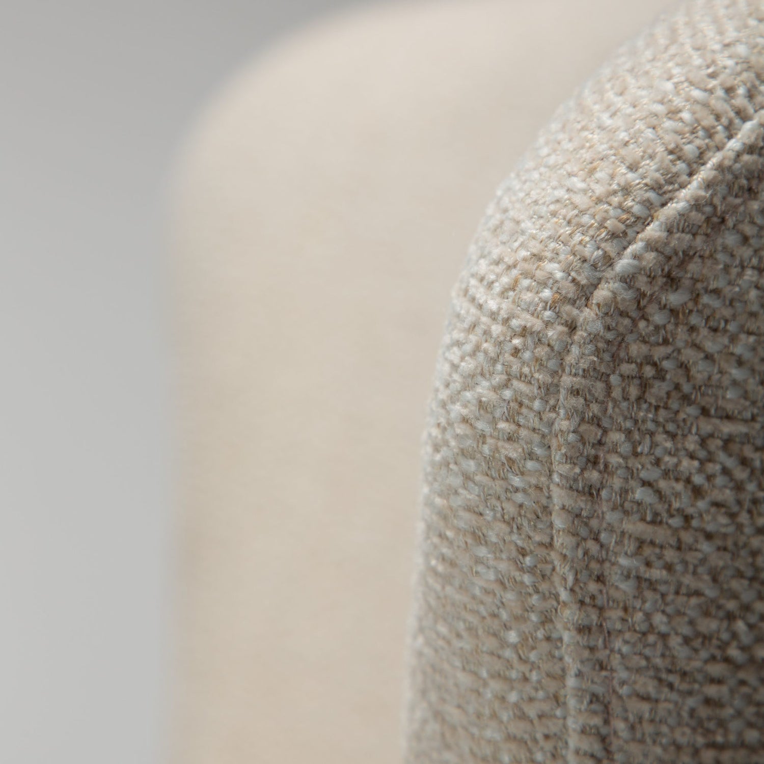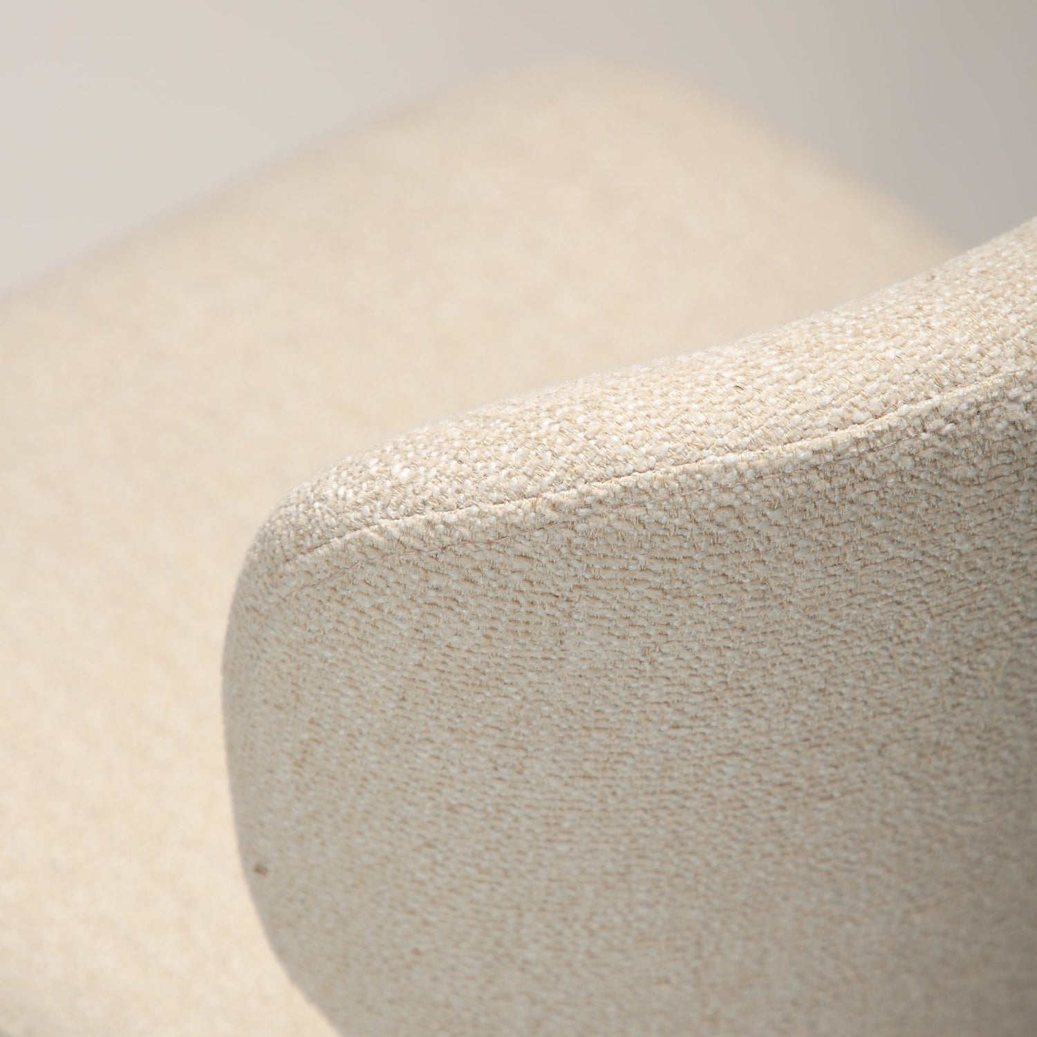 - Klädsel: i bouclétyg, ett bekvämt material känt för sin unika, öglade struktur och rika, taktila känsla.