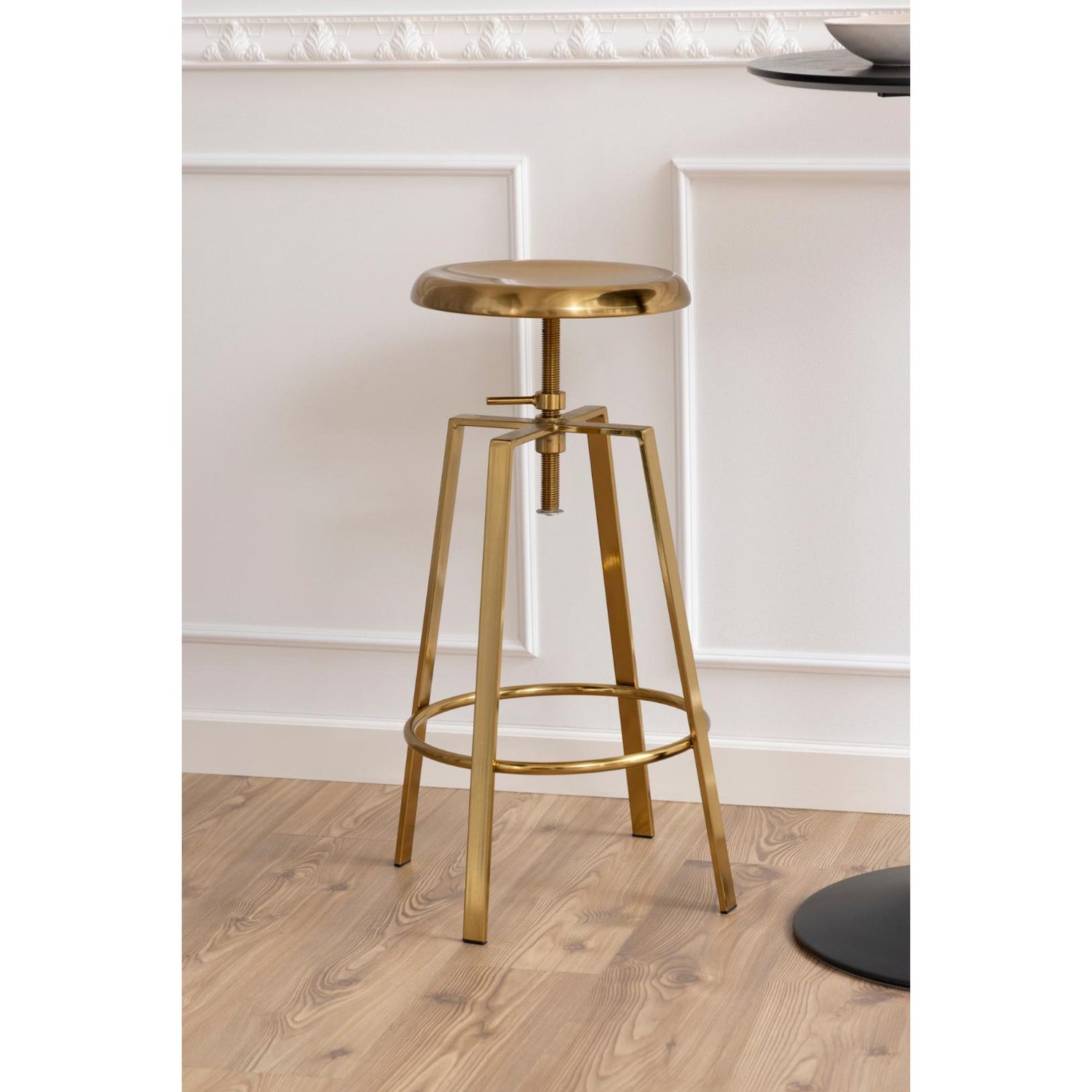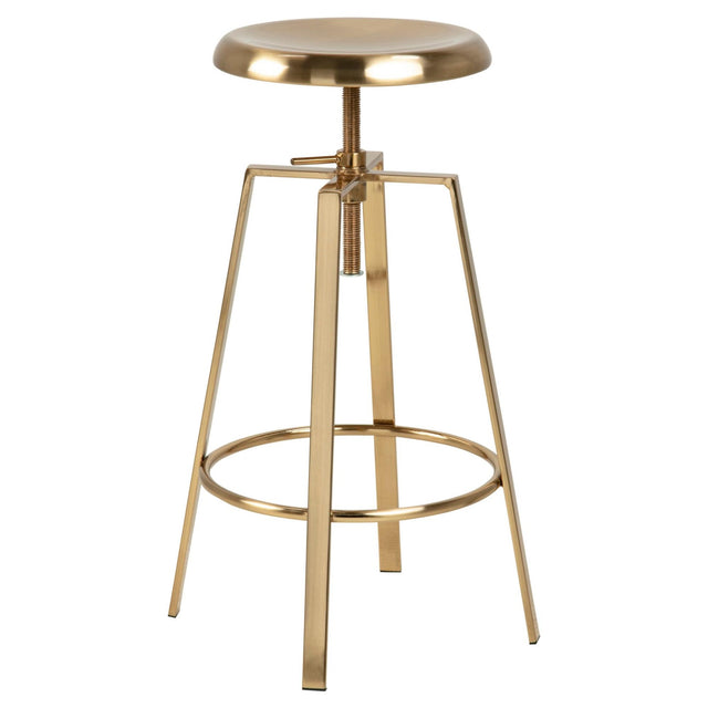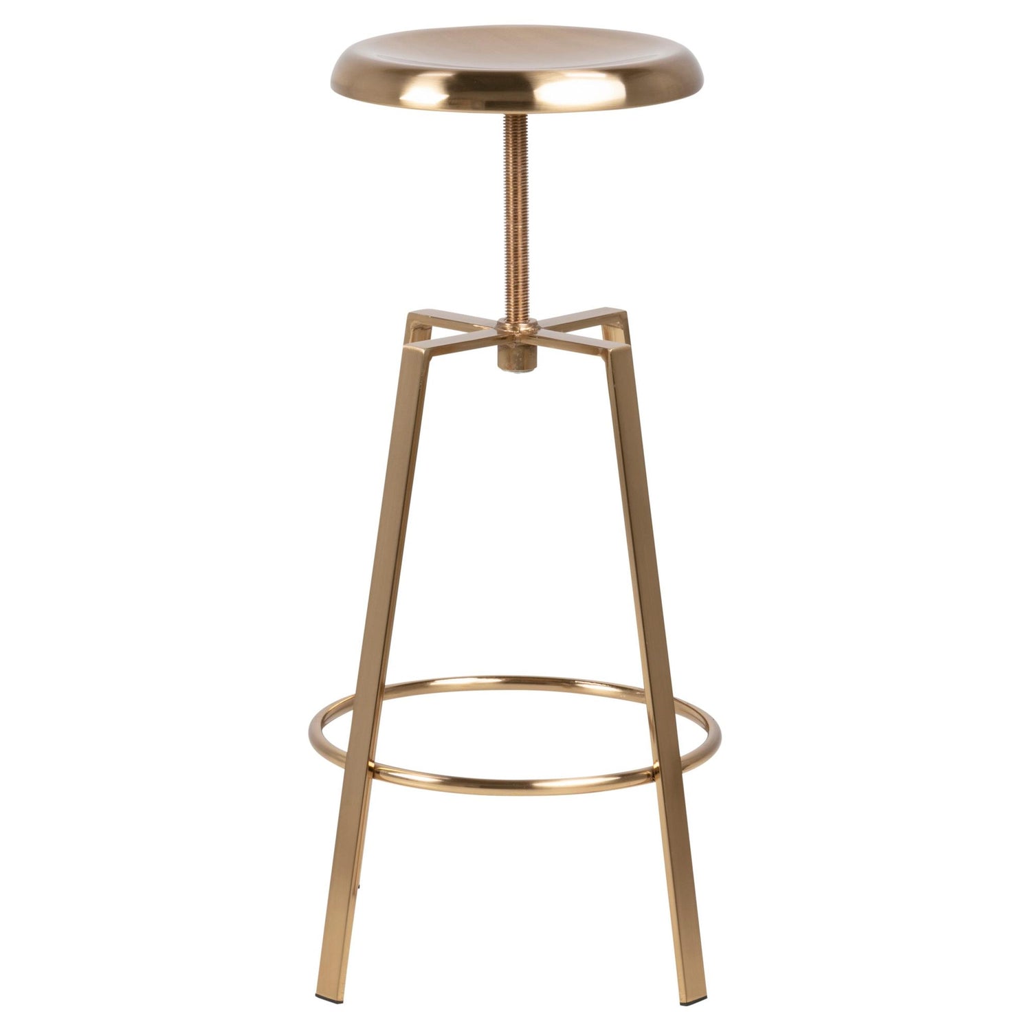 En barstol som ger ditt hem eller arbetsområde ett modernt utseende. Den rektangulära metallsockeln ger optimal stabilitet och inkluderar ett runt fotstöd för att vila dina ben. I kombination med en konturerad, höjdjusterbar sits kompletterar båda elementen varandra och skapar en enhetlig design. Mässingsfärgen förbättrar den industriella looken och gör denna barstol riktigt fängslande.