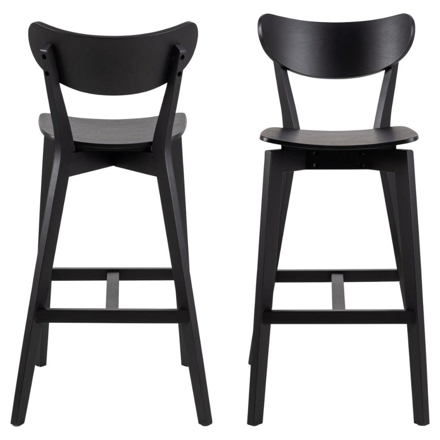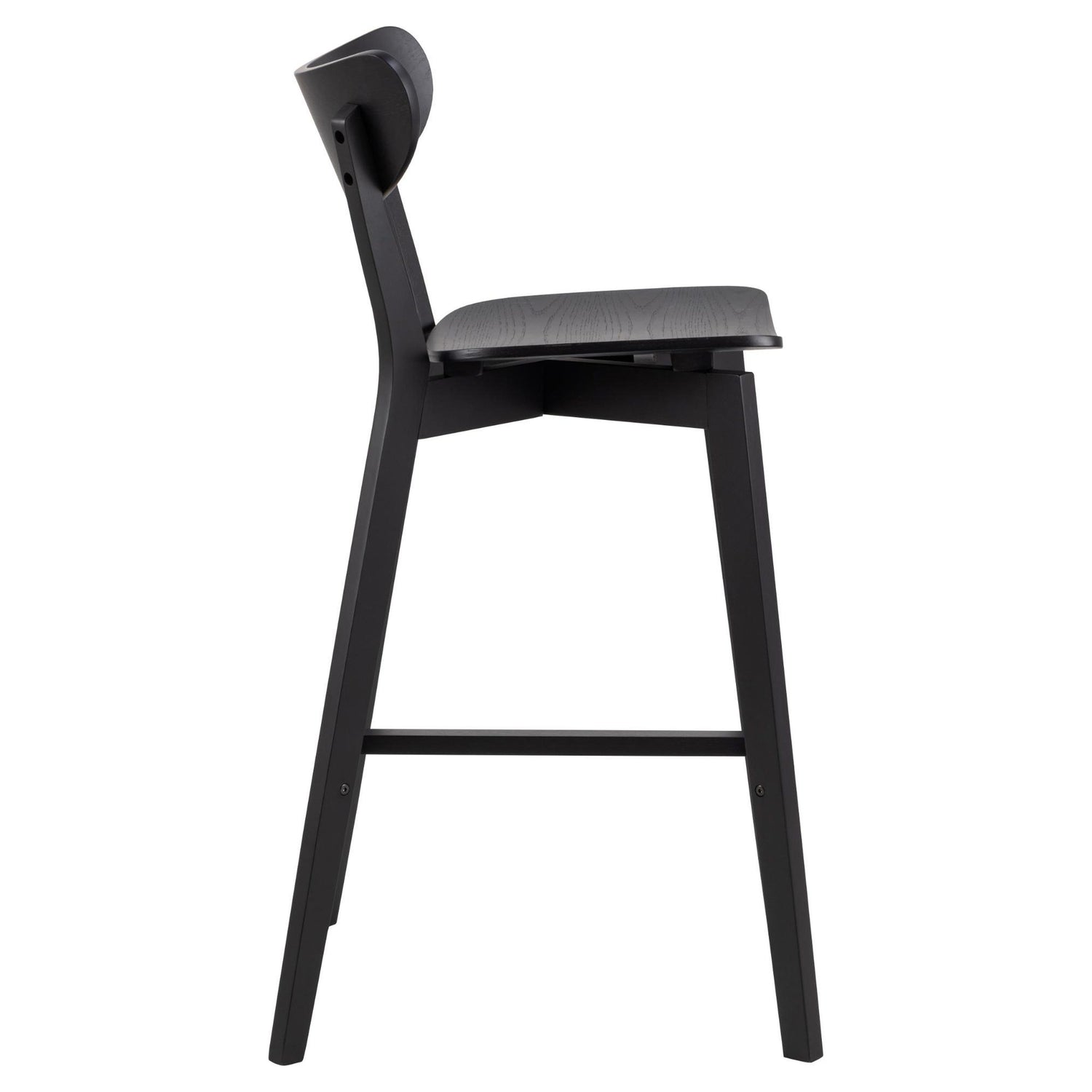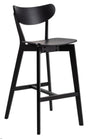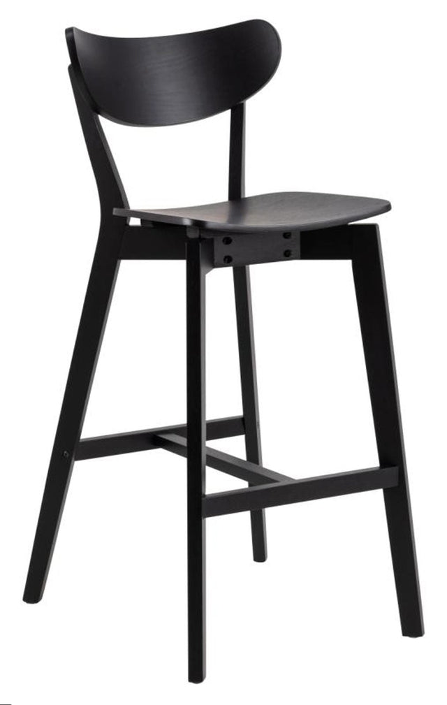Alba är en elegant barstol som kombinerar retrokänsla med modern estetik och blir ett stilfullt inslag vid köksön eller bardisken. Den helsvarta designen med svartlackerad ekfanér och trä ger ett sobert och tidlöst uttryck, medan det böjda ryggstödet och fotstödet bidrar till god komfort.