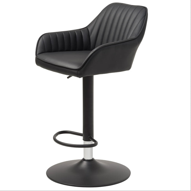 Strato ger en ren, modern barlook med lättskött sits i vintage-inspirerad PU och en stabil trumpetfot i metall. Den vadderade sitsen med snygg kanalstickning ger skön komfort, medan gaslyften låter dig hitta perfekt höjd vid både köksö och bar.