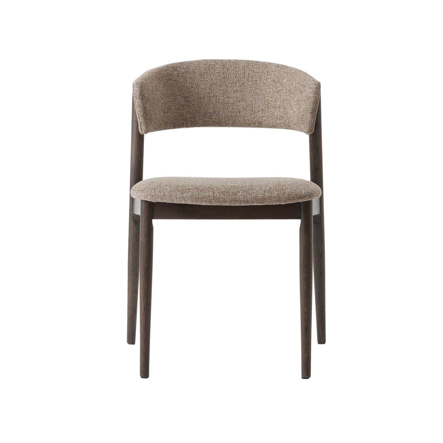 Grant är matstolen som förenar varm textil med elegant trä. Den omfamnande, lätt svängda ryggen och den mjukstoppade sitsen i Latte Mélange bjuder in till långa middagar. Underredet i espressofärgad ek ger en sofistikerad kontrast och den nätta profilen gör stolen lätt att möblera runt både runda och rektangulära bord. Stilren skandinavisk form, med tydlig premiumkänsla.