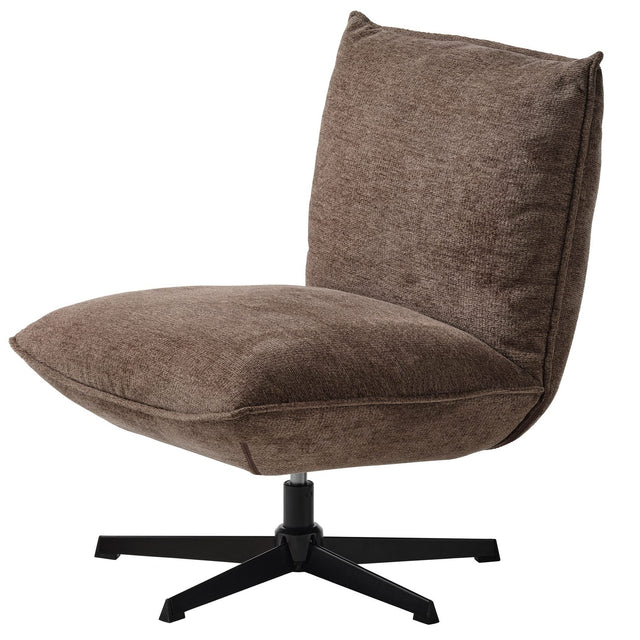 Härligt chokladbrunt tyg med mjuk lyster ger Humphrey Loungefåtölj ett varmt, inbjudande uttryck. Den generöst stoppade sitsen och det följsamma ryggstödet ger skön avlastning för både korta pauser och långa kvällar. Den svarta femstjärniga metallfoten med svängfunktion adderar modern karaktär och gör fåtöljen lätt att vrida mot samtal, tv eller utsikt. De bärande delarna i stommen är i massivt trä. En stilren accent som fungerar lika bra solo som i par. finns även i färgen offwhite.