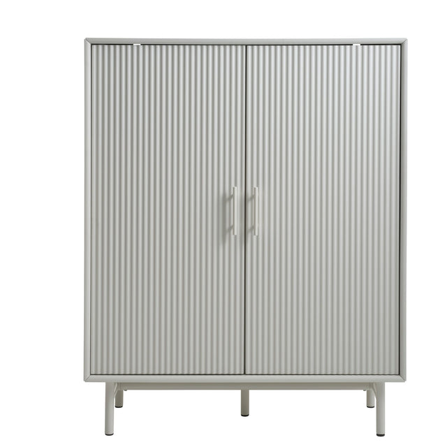 Arco skåp kombinerar skandinavisk enkelhet med tydlig karaktär. Den harmoniska greige-finishen och de räfflade dörrfronterna ger ett elegant djup, medan det slanka underredet i metall lyfter möbeln och skapar ett luftigt intryck. Bakom de två dörrarna finns rymlig förvaring med hyllplan – perfekt för porslin, textilier, spel eller kontorsprylar du vill ha nära men välorganiserade. En stilren förvaringslösning som passar lika bra i vardagsrum och matsal som i hall och hemmakontor.
