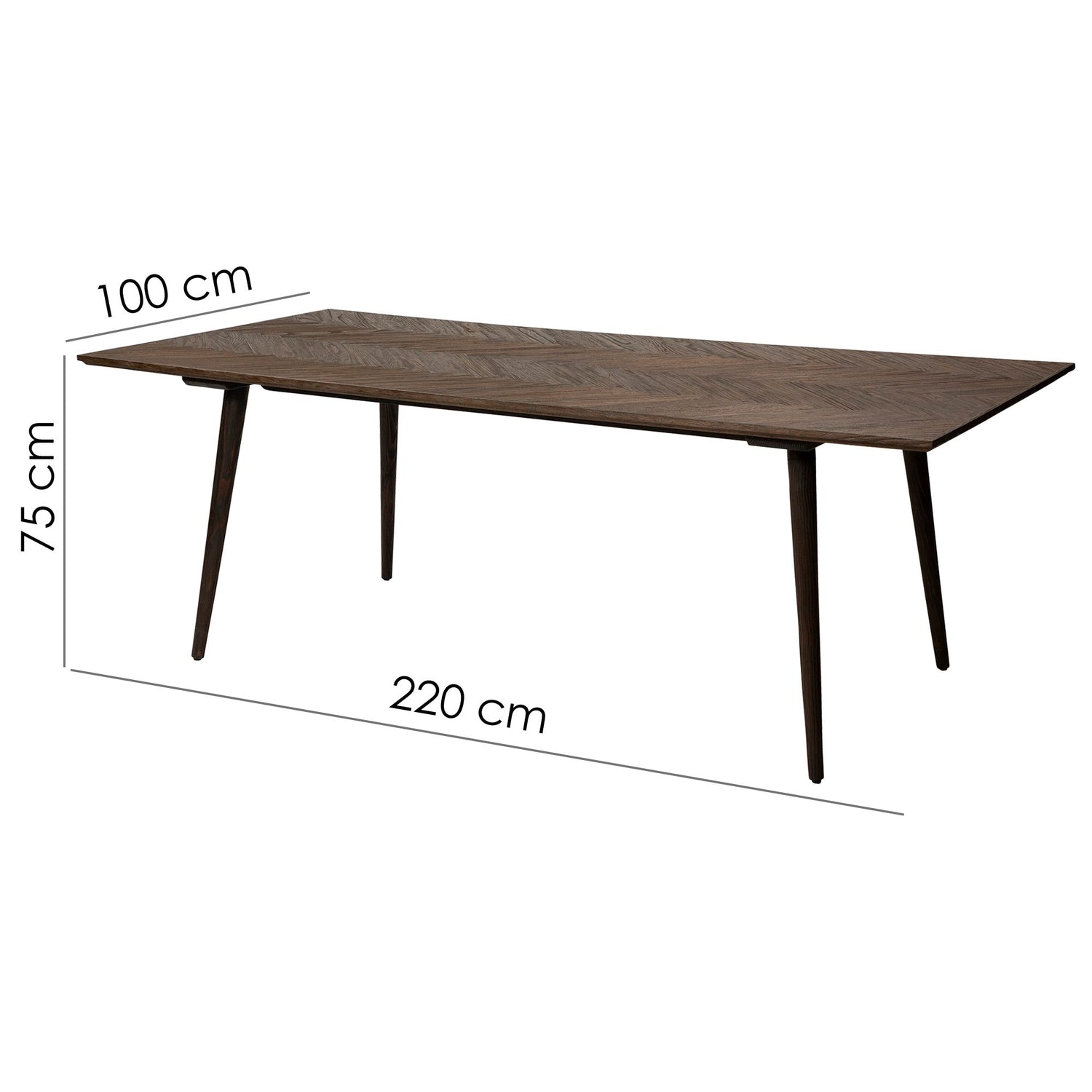 BONE-bordet är designat med koniska ben i en något utåtvinklad vinkel och en bordsskiva med vinklade kanter för ett lättare utseende. Träfaneren på bordsskivan har lagts i ett vackert fiskbensmönster som ger bordet dess karaktär. Bordsskivans yta har viss struktur då den följer träådringen för att ge bordet en mer naturlig känsla. Bordet är inte förlängningsbart. BONE finns endast som matbord.