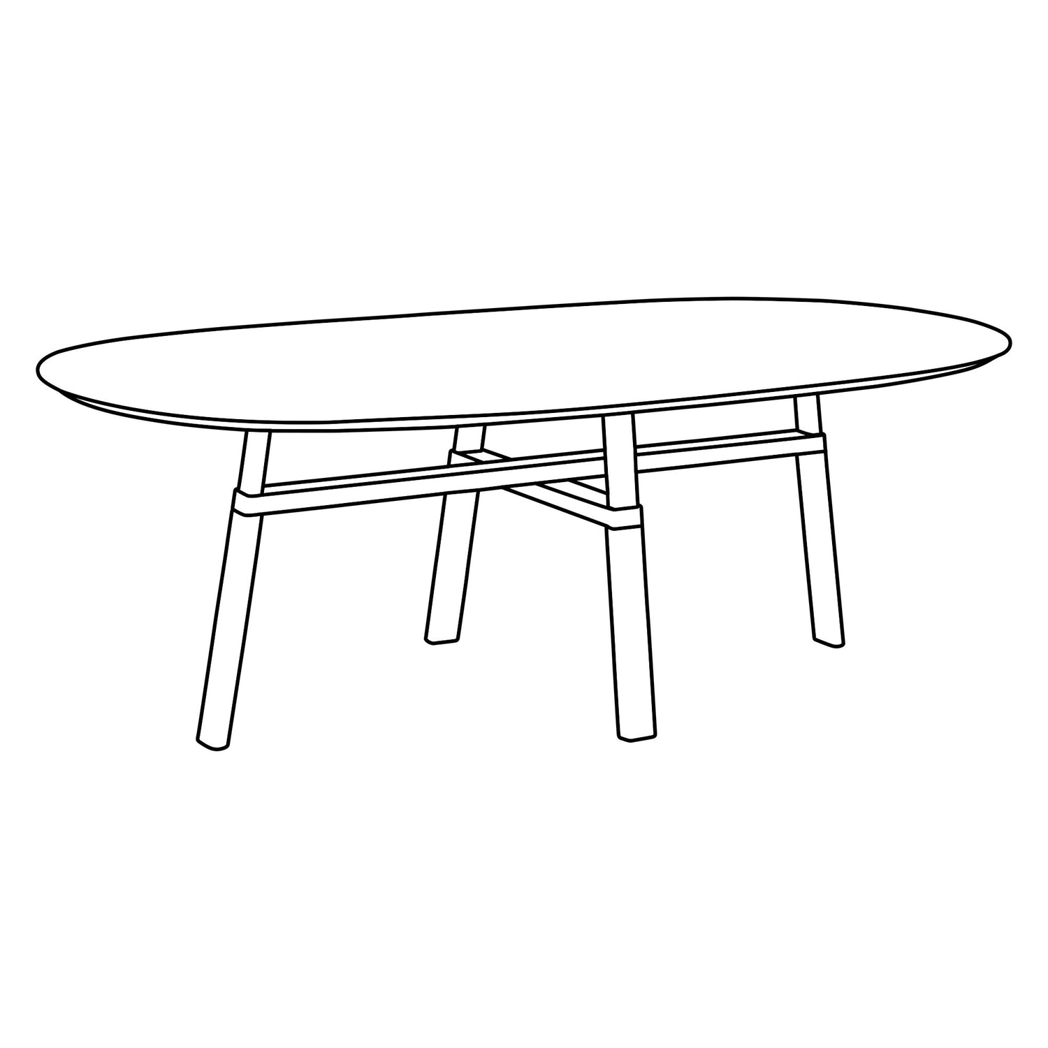 En klassisk bordsdesign med djärvt hantverk av Santiago Sevillano, CROSS-bordet går inte obemärkt förbi. Det har en oval bordsskiva och träkorsade ben med extravaganta, bearbetade fogar. Den avrundade toppen har en fasad kant för en lätt och luftig känsla, medan de stadiga benen ger ett jordnära estetiskt uttryck.