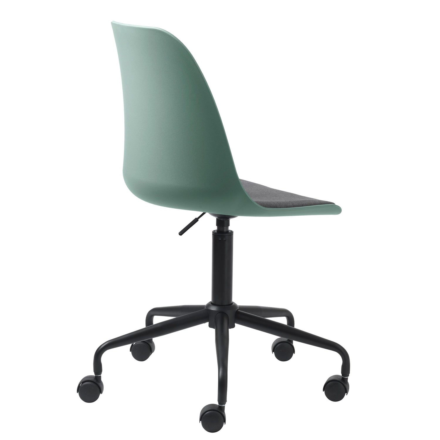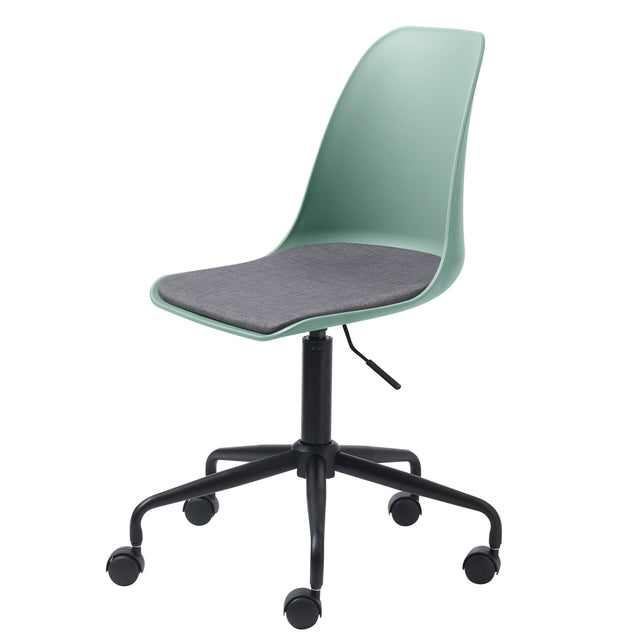 Diamante i dammig grön piggar upp hemmakontoret med en modern, mjuk färgton och en nätt siluett. Det formgjutna skalet ger skön support, medan den vadderade sitsdynan gör att du sitter bekvämt genom hela arbetsdagen. Stolen har justerbar höjd med gaslift och rullar lätt på sin kryssfot med fem ben, perfekt när du växlar mellan skrivbord, skärm och möteshörna.