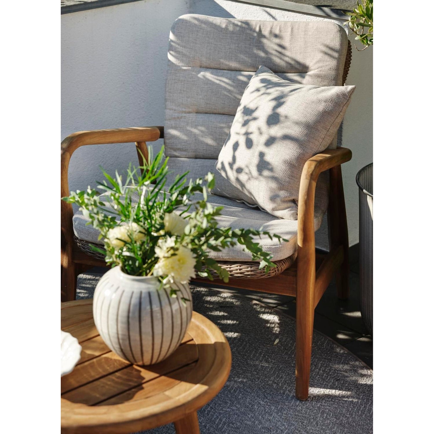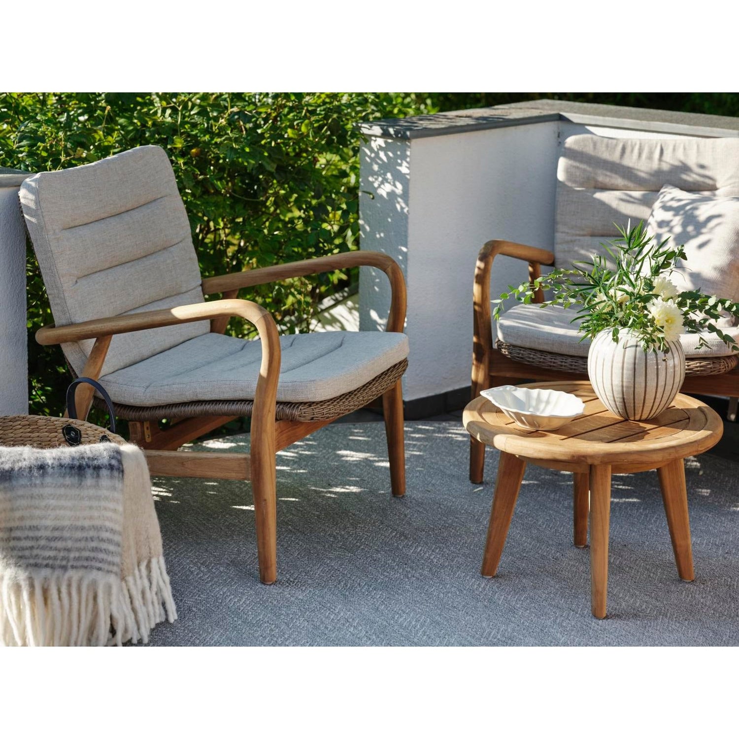 Lilja är en grupp gjord för att passa både till avkoppling och måltider. Runda organiska former i teak. Rejäla delar som samtidigt har en elegans i sina rundade detaljer.