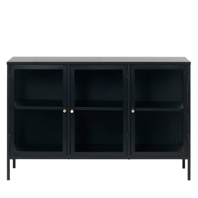 Milano är en elegant skänk i svart metall med tre sektioner bakom glasdörrar – perfekt när du vill visa upp fint porslin, böcker eller dekorationer utan att samla damm. De slanka benen och de små knoppbeslagen ger en lätt, tidlös siluett som smälter in i moderna såväl som klassiska hem. Varje sektion har hylla för smart översikt och gott om plats.