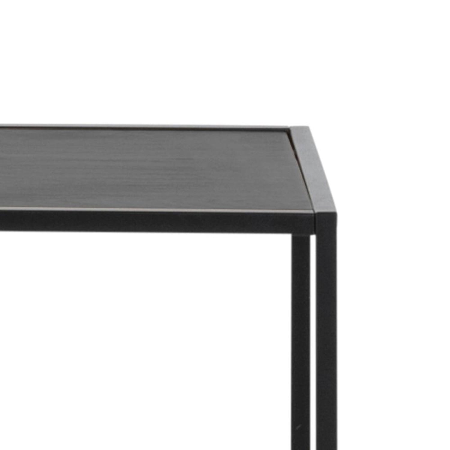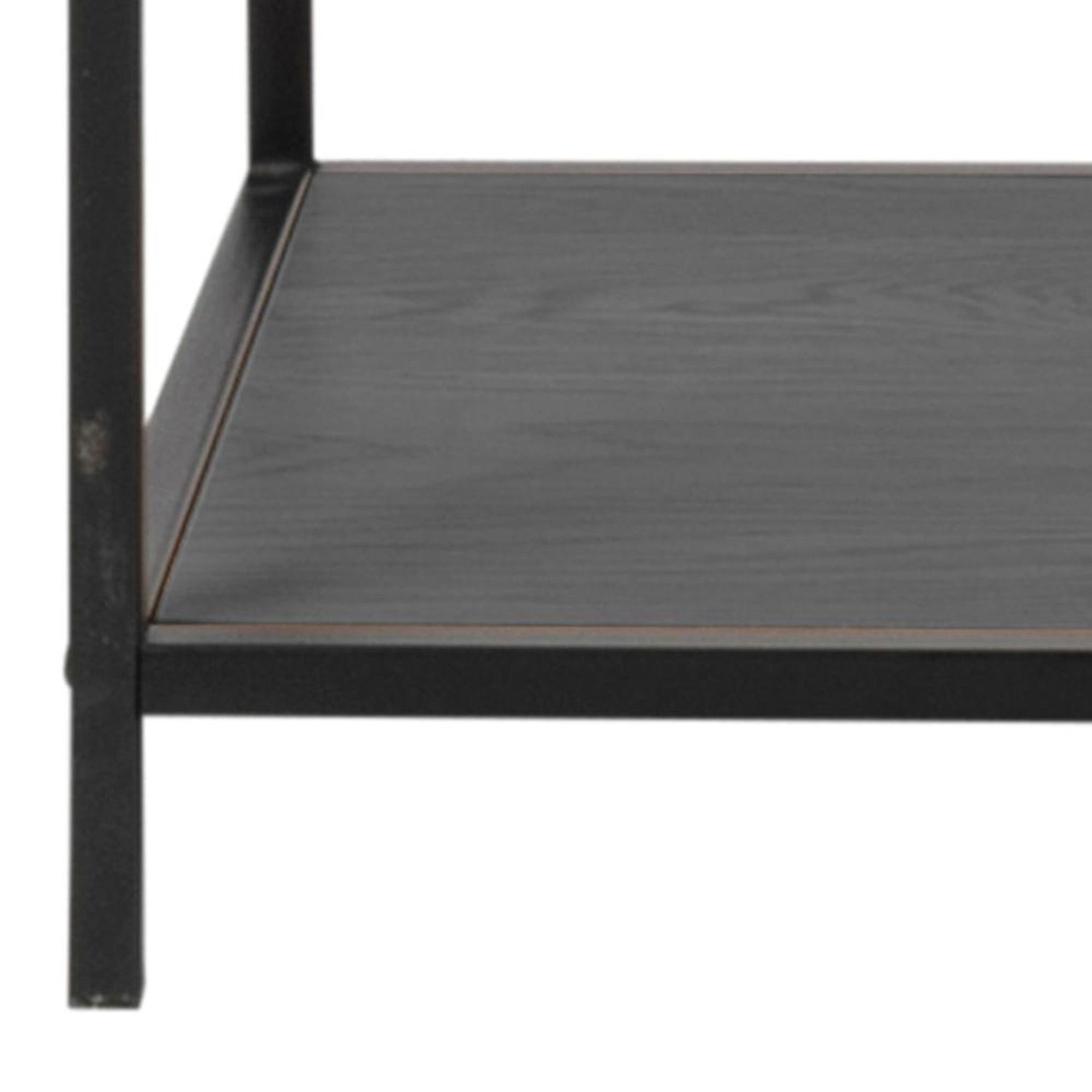 Denna eleganta bokhylla i svart ask och vild ek är designad för att ge ditt hem ett stilrent och modernt industriellt utseende, perfekt för att framhäva dina dekorationsobjekt.