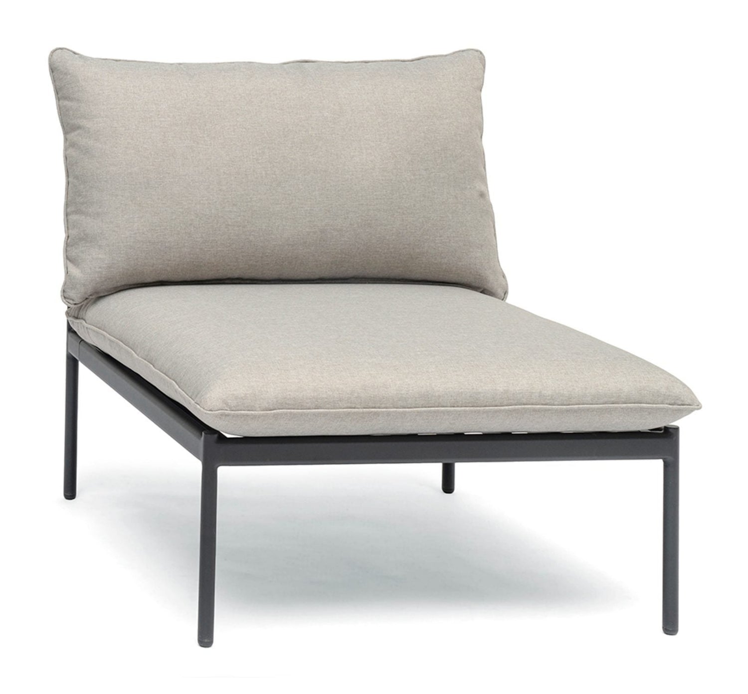 Modern stilren underhållsfri modulsoffa. Mjuka runda profiler möter stram design med lekfull modularitet. Kombineras precis så som du önskar med hörndelar, mittdelar, divaner och bord. Tillverkad i aluminium med dynor i gråbeige olefin. Avtagbar klädsel som kan tvättas i handtvätt 30 grader. Diskreta beslag och sammansättningar. Klämma medföljer för låsning av moduler.