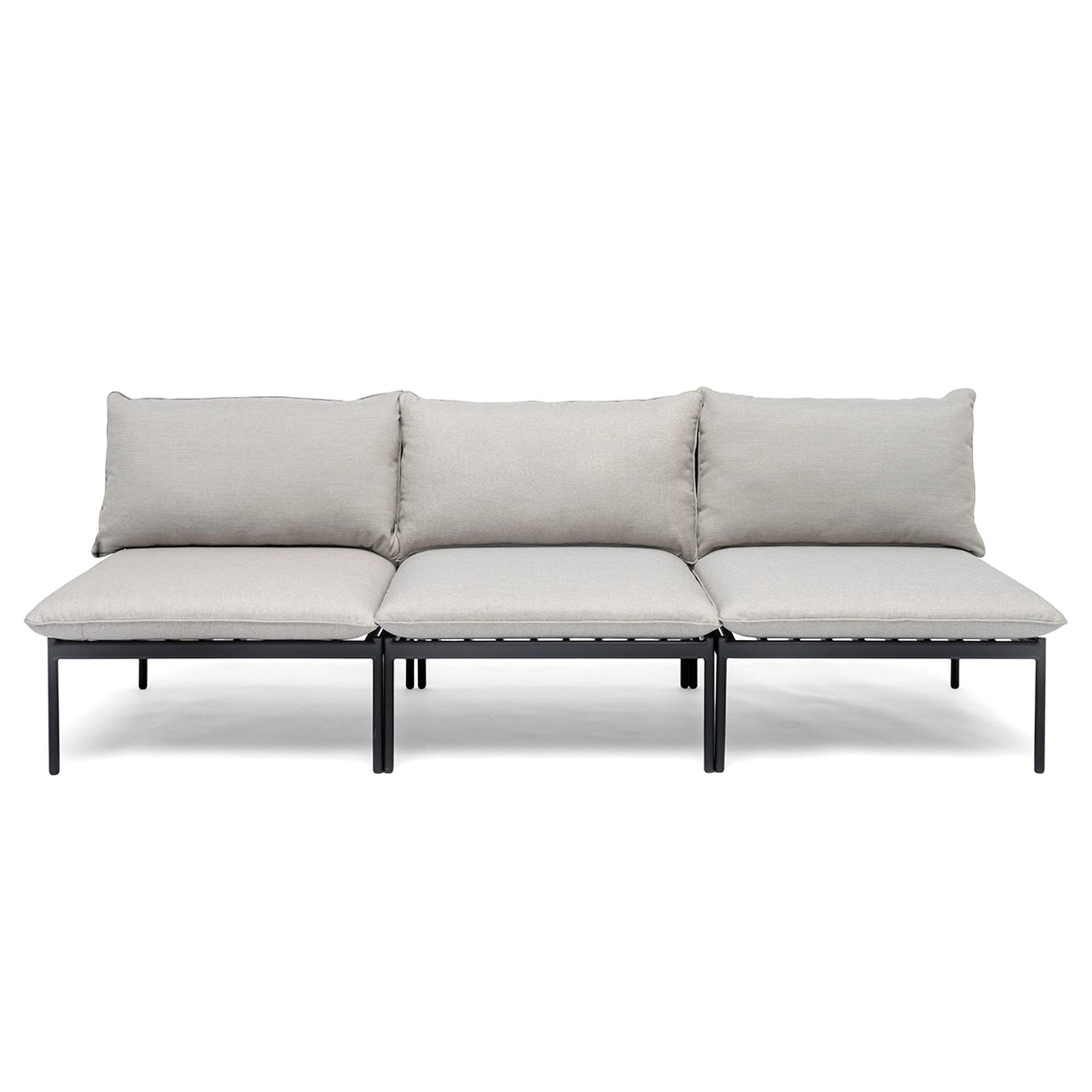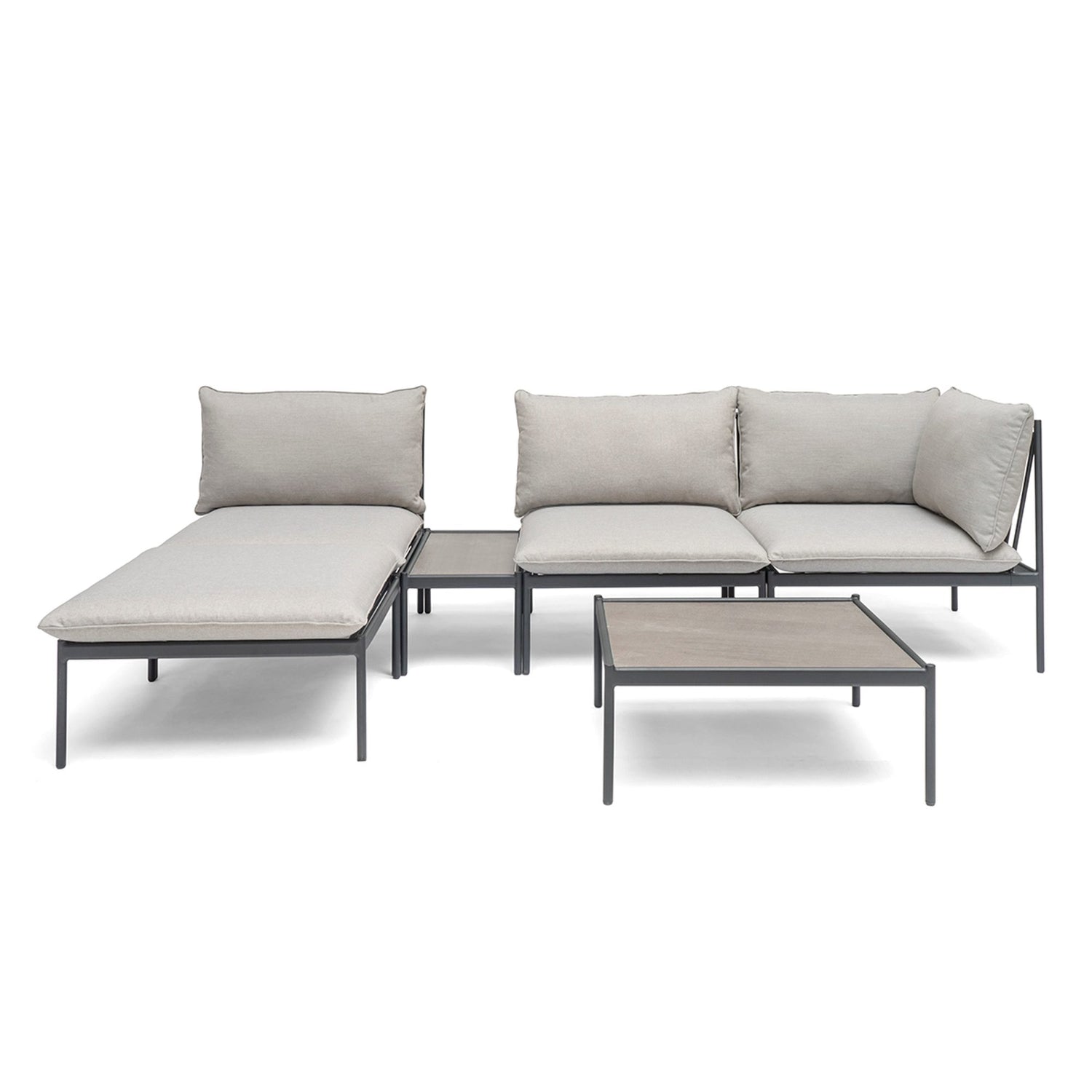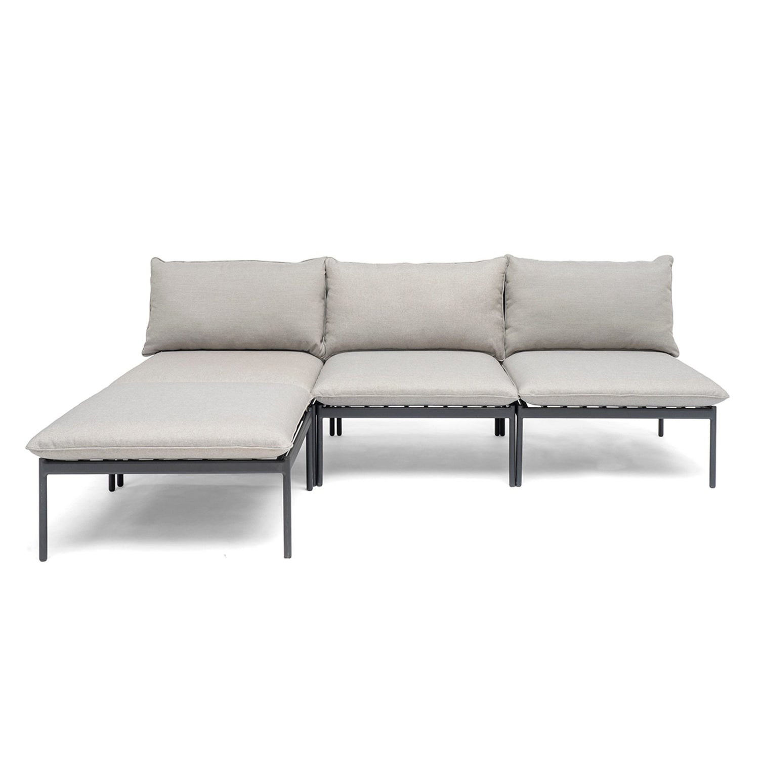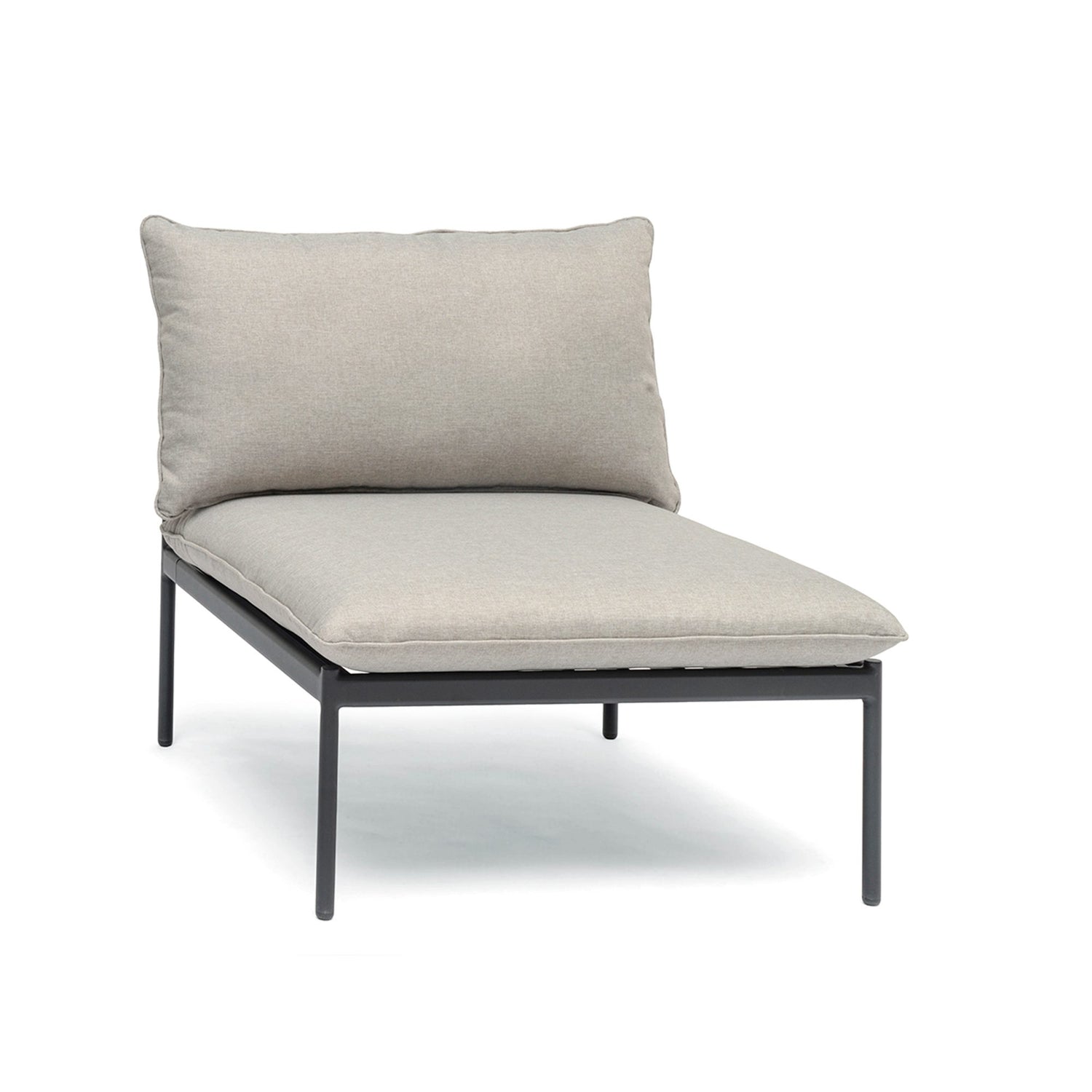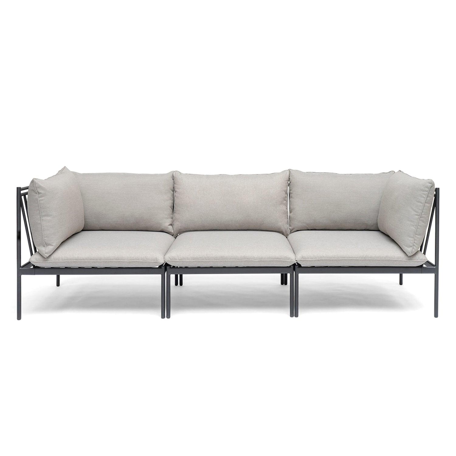 Modern stilren underhållsfri modulsoffa i mjuka runda profiler som möter stram design med lekfull modularitet. Kombineras efter ditt utrymme, precis så som du önskar. Tillgänglig i hörndelar, mittdelar, divaner och bord. Tillverkad i aluminium med dynor i gråbeige olefin. Avtagbar klädsel som kan tvättas i handtvätt 30 grader. Klämma medföljer för låsning av moduler.
