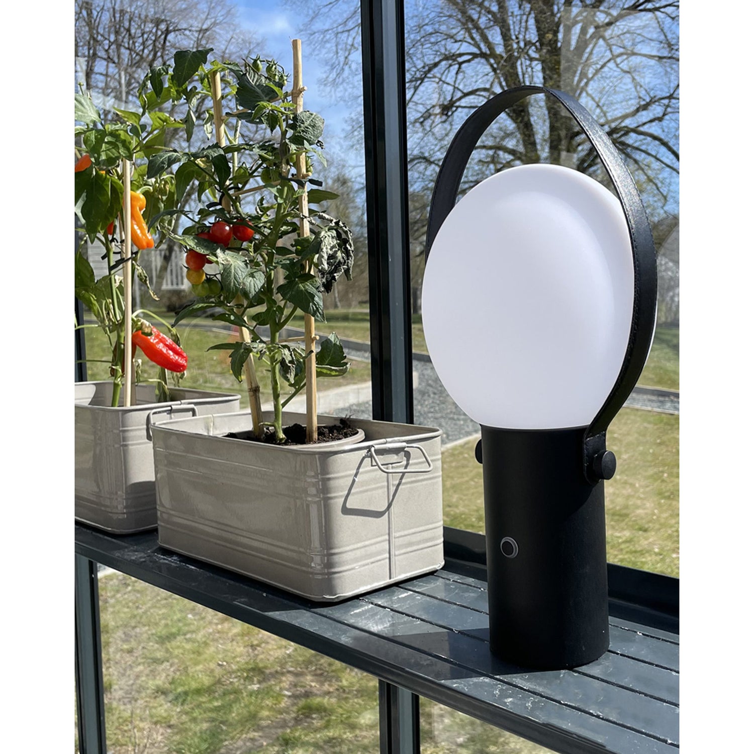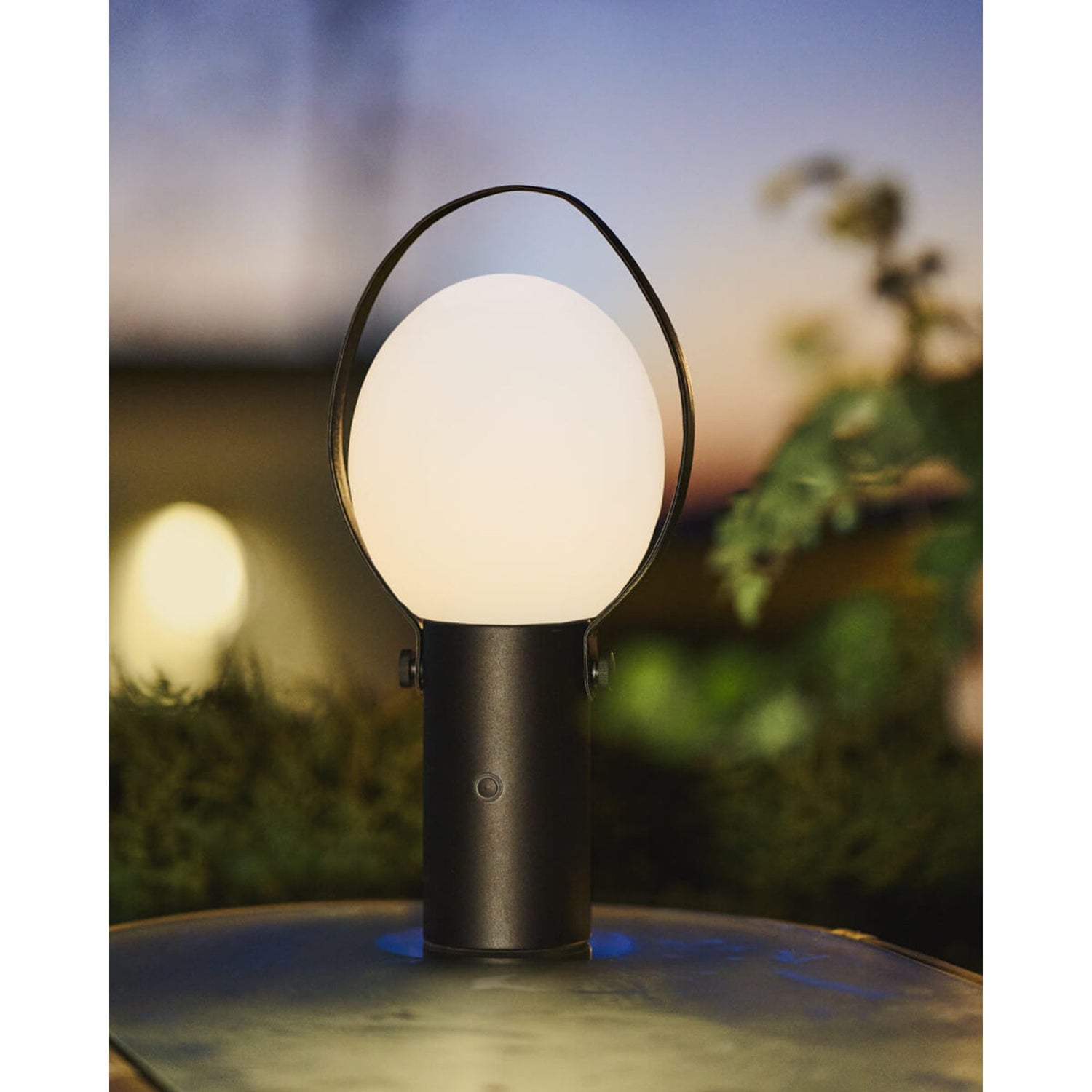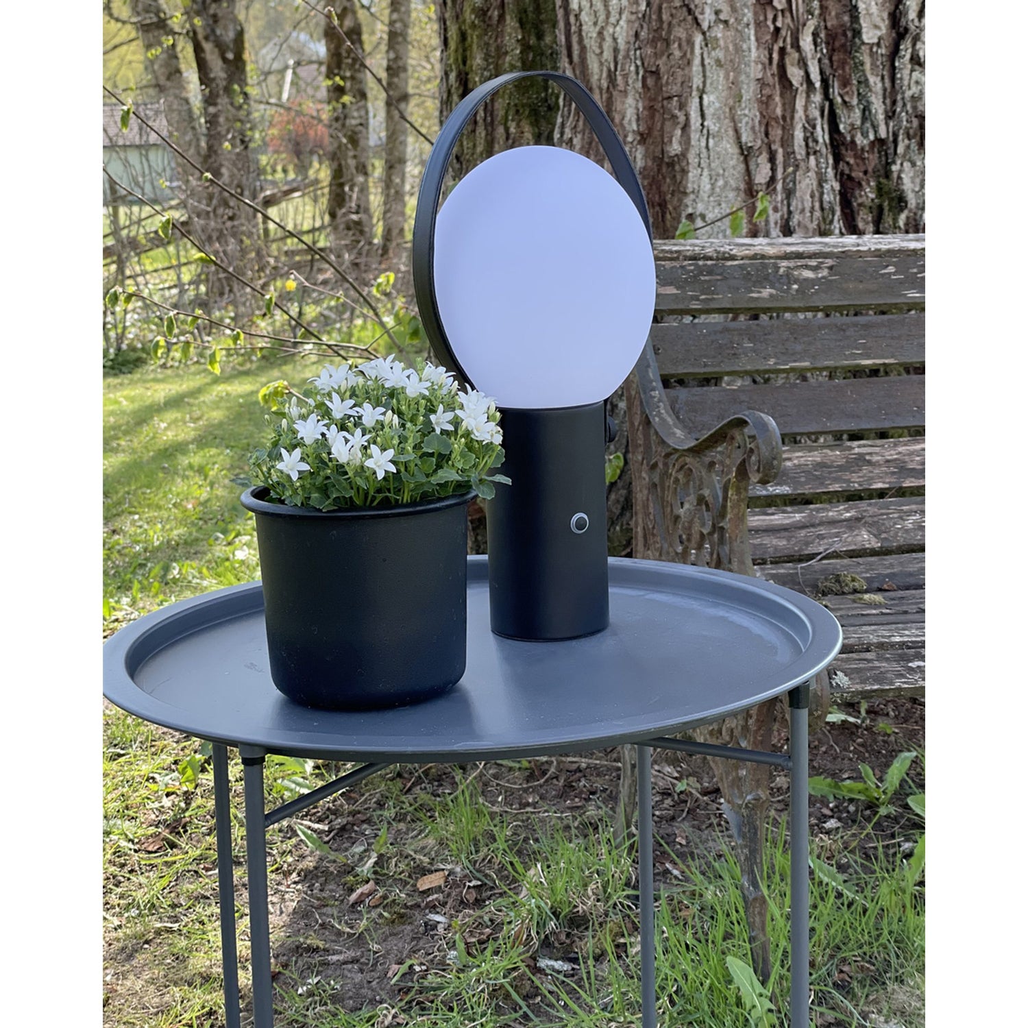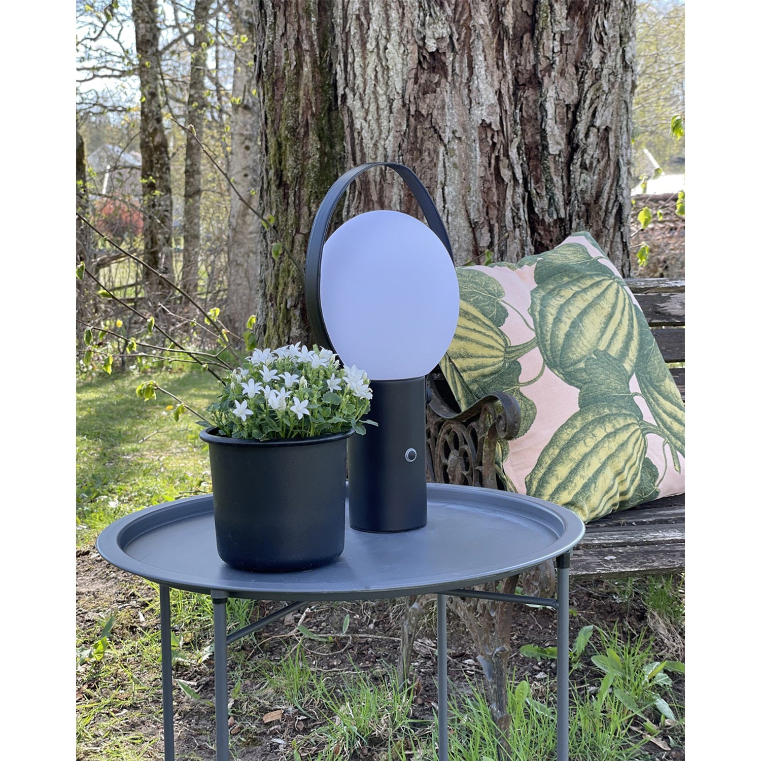 En funktionell skönhet. Bari bordslampa är svår att motstå. Vissa kanske hävdar att Bari bordslampa först och främst är snygg, medan andra möjligtvis påstår att lampan i första hand är praktiskt. Vi menar att Bari är lika delar både och. Det är svårt att se förbi det faktum att Bari bordlampa har en stilren, avskalad och modern design och samtidigt är den perfekta ljuskällan under mörka kvällar på uteplatsen. Bari bordslampa trivs nämligen lika bra utomhus som inomhus och är på grund av att den drivs av uppladdningsbara batterier, ett smidigt alternativ att bära med dig var du än behöver ljus. Ta med dig Bari bordslampa ut på picknicken, ner till badbryggan vid kvällsdoppet, eller till middagen ute i trädgården. Förläng dina kvällar med denna uppladdningsbara bordslampa och njut av dess behagliga sken, dag in och dag ut, året om! Bari portabel bordslampa är 35,5 cm hög och 15 cm där den är som bredast. Bari bordslampa har 1 styck integrerad ljuskälla med 3W LED. Bari bordslampa är uppladdningar. Lampan är även IP-44 klassad, vilket innebär att den är vattentät och klarar av att stå ute året runt. Lampan tänds, släcks samt ljusregleras genom att trycka in en knapp på lampfoten.